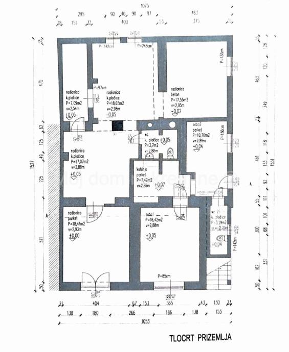 Prodaje se kuća katnica na odličnoj lokaciji. Sastoji se od prizemlja i dva kata. U prizemlju se nalazi poslovni dio i stan sa zasebnim ulazom. Prvi kat je u roh-bau izvedbi te se prostor može urediti po vlastitim željama. Iz prostora postoji izlaz na terasu. Drugi kat je kompletno adaptiran 2014.godine te je odmah useljiv. Međukatna konstrukcija: betonske deke. Krovište na kući promijenjeno 2014.godine.