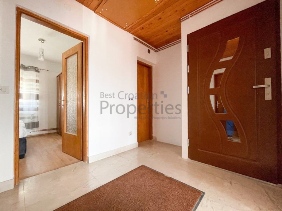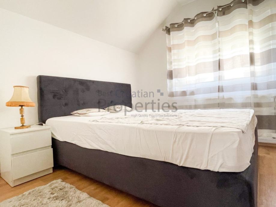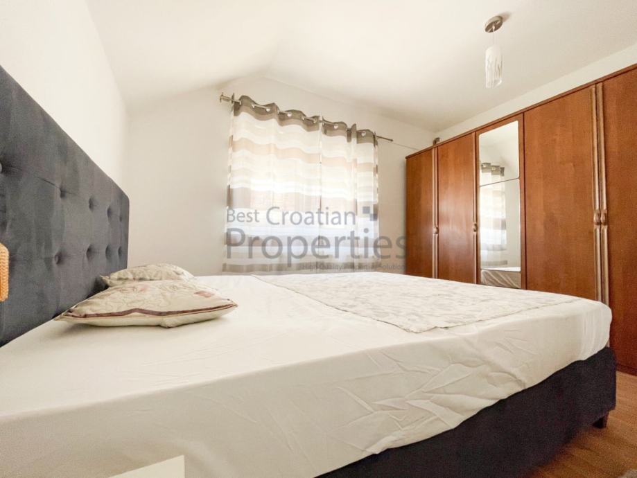 Stan je u potpunosti opremljen i namješten (klima uređaj, PVC stolarija, protuprovalna vrata, perilica posuđa te perilica rublja, hladnjak s manjom ledenjačom)