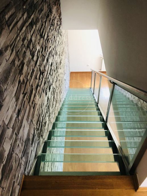Trosobni dvoetažni stan sastoji se od ulaznog podesta, dnevnog boravka s blagovaonom, kuhinje i kupaonice, te terase, a na galerijii stepenice s predprostorom, dvije