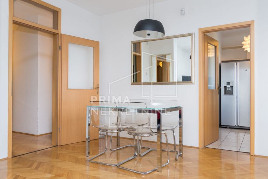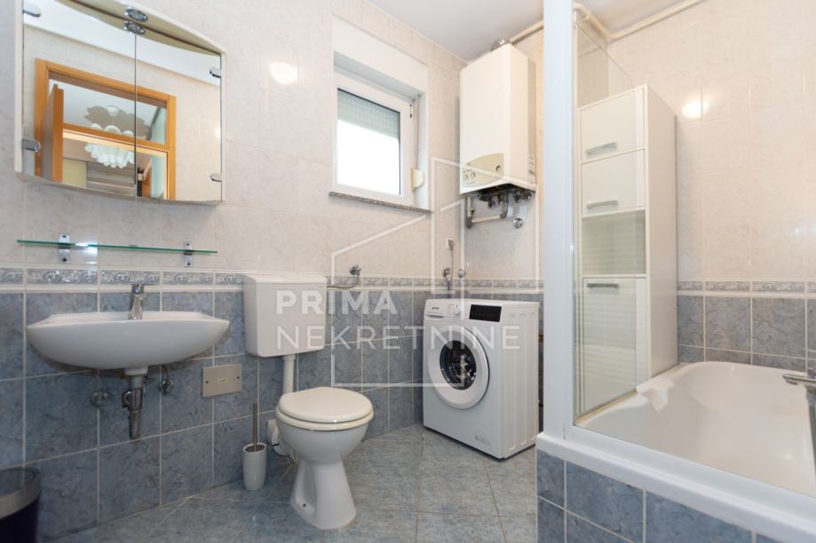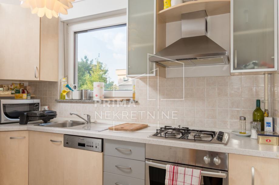 Prostor je pažljivo iskorišten, a stan se prodaje potpuno namješten, s većim brojem ugradbenih ormara i kvalitetno opremljenom kuhinjom s aparatima. U stanu su ugrađeni klima uređaj, alarmni sustav i centralno etažno grijanje.