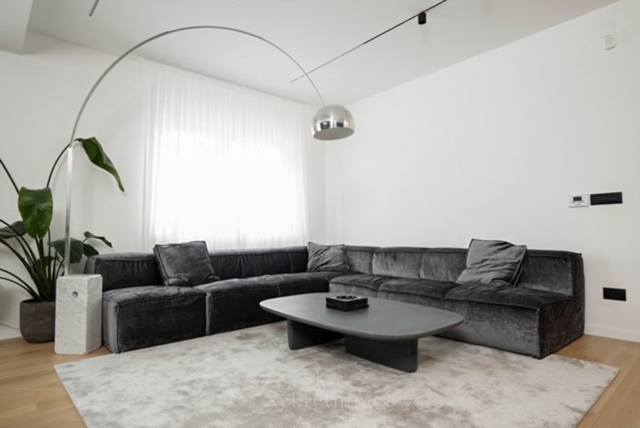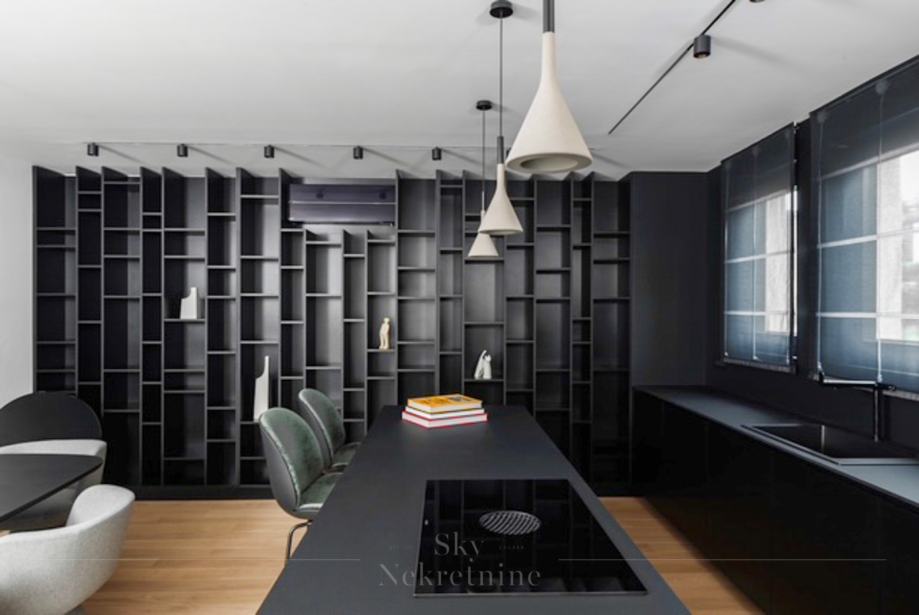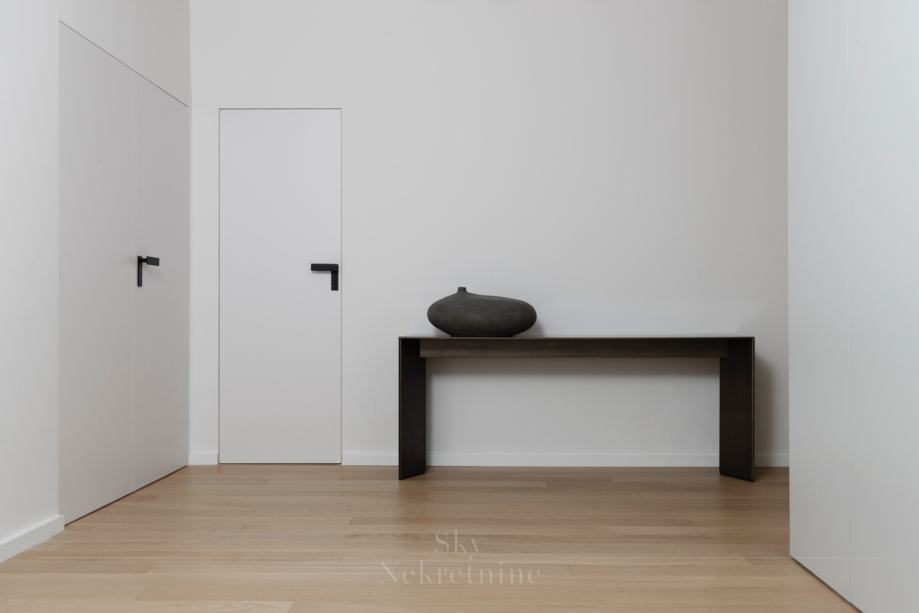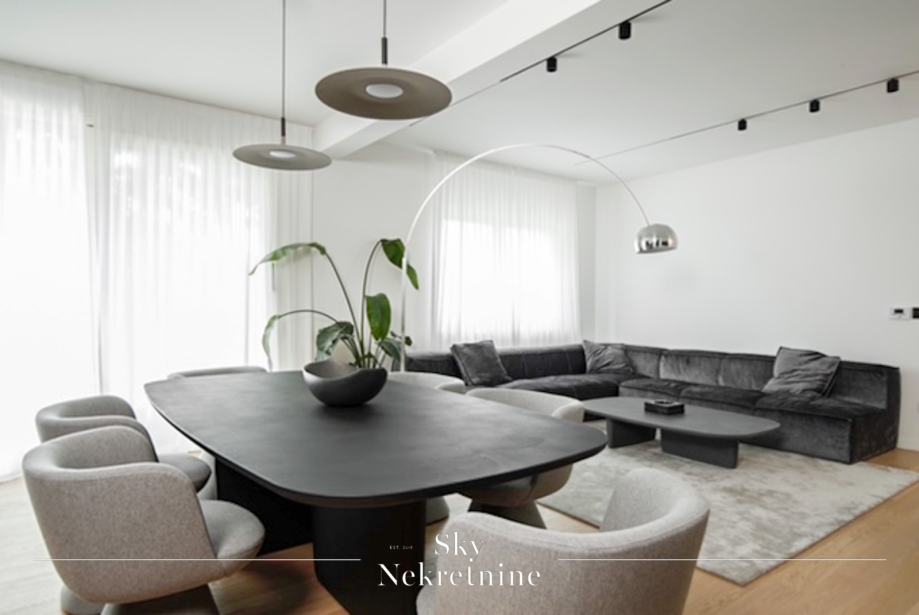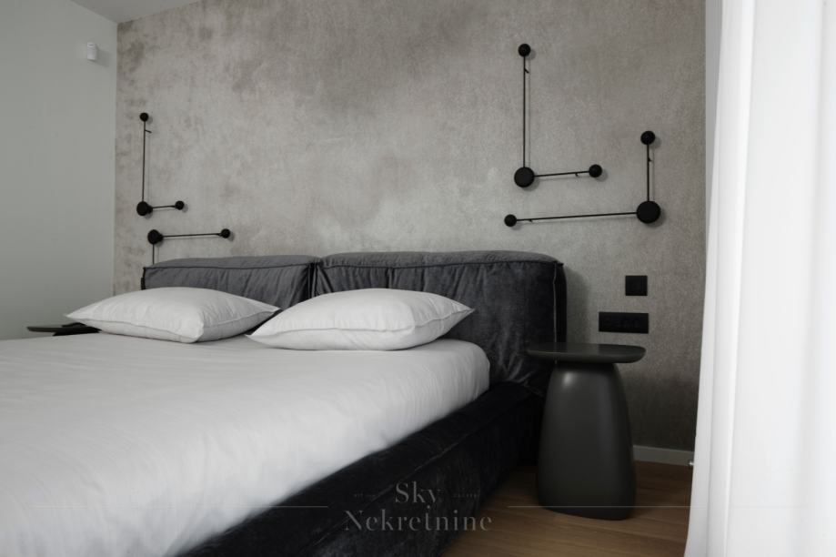 Stan je luksuzno opremljen vrhunskim namještajem te se sastoji od ulaznog hodnika, prostranog open-space dnevnog boravka s kuhinjom i blagovaonicom, tri spavaće sobe te kupaonice u kojoj se nalazi sauna, što ovoj nekretnini daje dodatnu razinu komfora i luksuza.