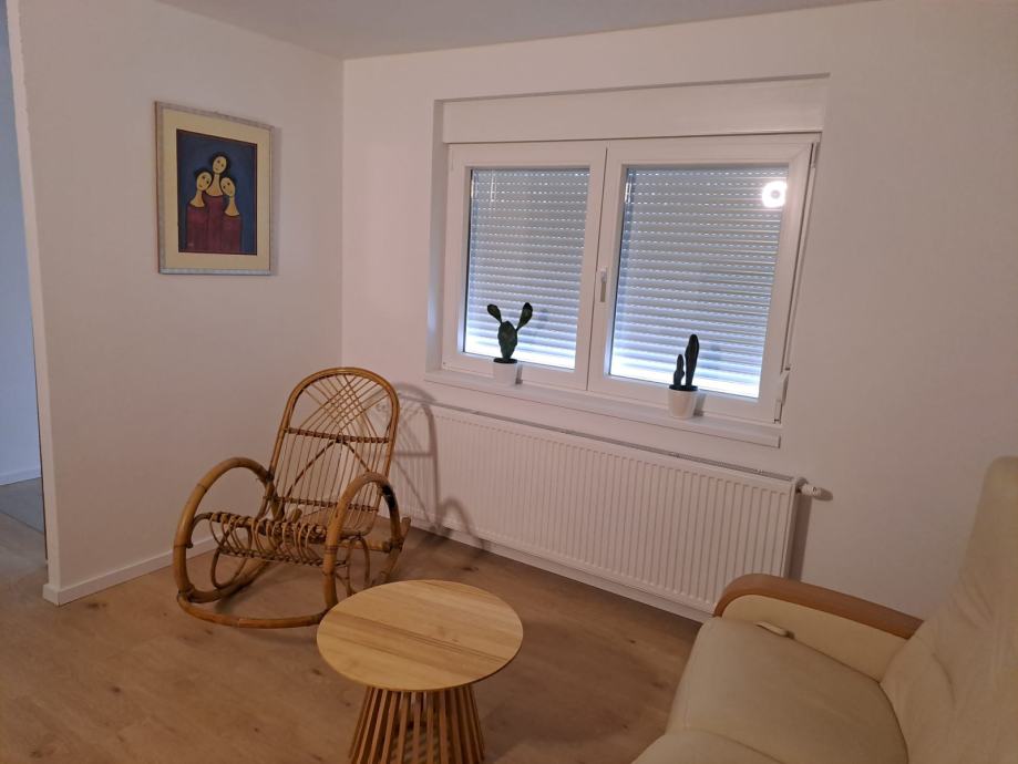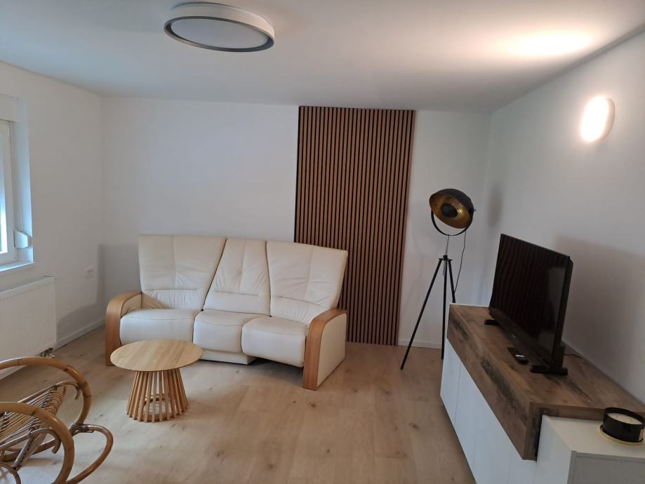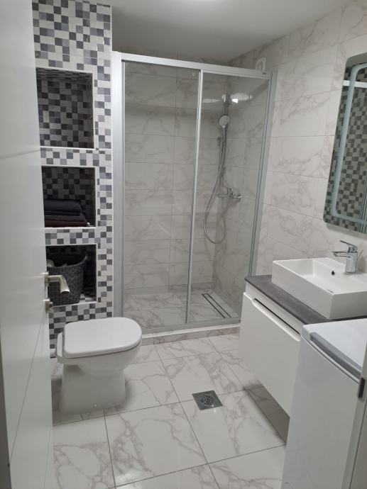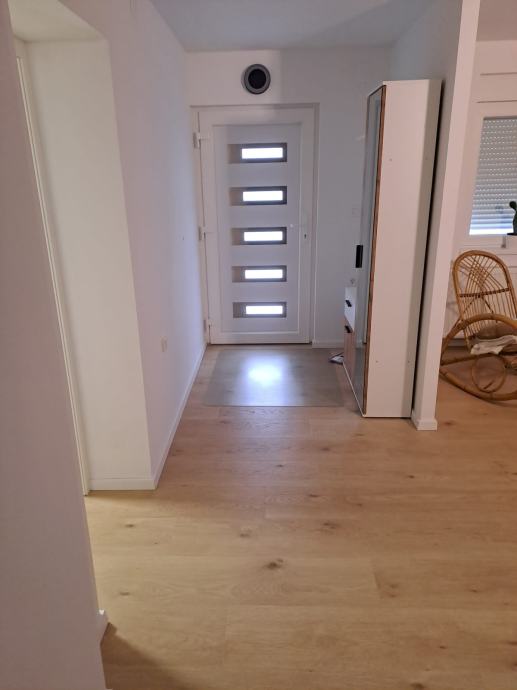 Ovaj svijetao i prostran stan sastoji se od ulaza, dnevne sobe, spavaće sobe, kuhinje i kupaonice ukupne površine 55 m2. Stan ima zaseban ulaz te izlazak na terasu oko koje se pruža vrt. Osigurano je vanjsko parkirno mjesto. Stan je useljiv od 1. kolovoza 2025.