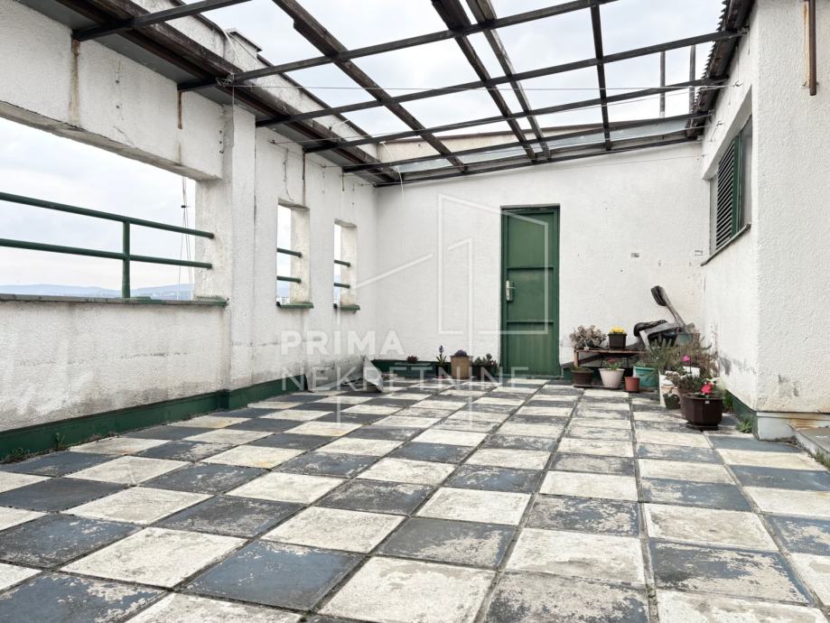 Posebna prednost je velika terasa na vrhu zgrade kojoj stan ima izravan pristup. Terasa nije uključena u kvadraturu stana jer predstavlja zajednički dio zgrade, no u praksi je dostupna za korištenje.