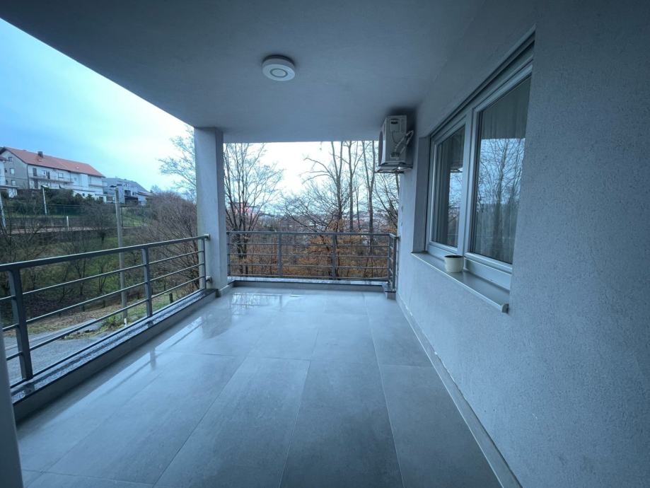 Stan je površine 74m2 zatvorenog prostora plus 14.50m2 balkona, i nalazi se na prvom katu zgrade građene 2011. godine. Zgrada je kvalitetno građena. Armirani beton s ispunom od opeke po najvišim standardima. Stan je adaptiran 2025.-e godine.Stan se sastoji od hodnika, dvije spavaće sobe, kupaonice, dodatnog wc-a, dnevnog boravka, blagovaonice, kuhinje, velikog balkona, ostave, garažnog mjesta te parkirnog mjesta.
