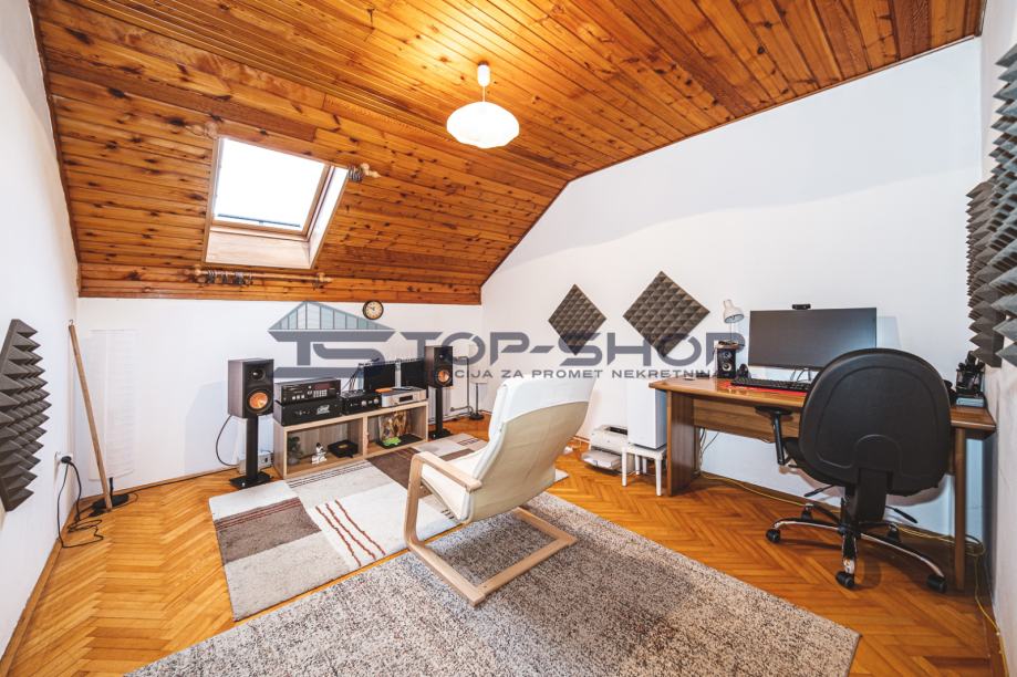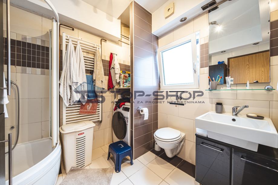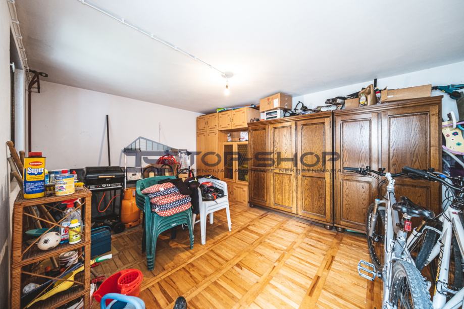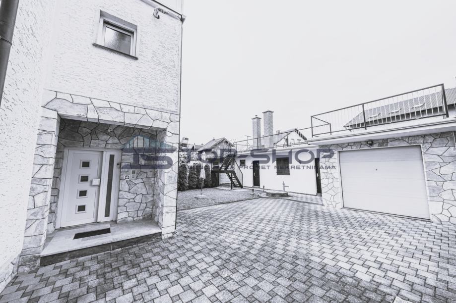 Unutrašnjost je opremljena kuhinjom s aparatima, perilicom posuđa i perilicom rublja, pružajući sve potrebno za udoban život. Dodatne pogodnosti uključuju balkon, zimski vrt u potkrovlju, garažu, parkiralište, dvorište i ostavu/skladište. Grijanje je na plin s centralnim sustavom, dok je klimatizacija dodatno povećava komfor tijekom cijele godine. Uređena okućnica doprinosi ukupnoj atraktivnosti i privatnosti nekretnine. Posebna prednost je osigurano parkiranje, što je izuzetno vrijedno na ovoj lokaciji.