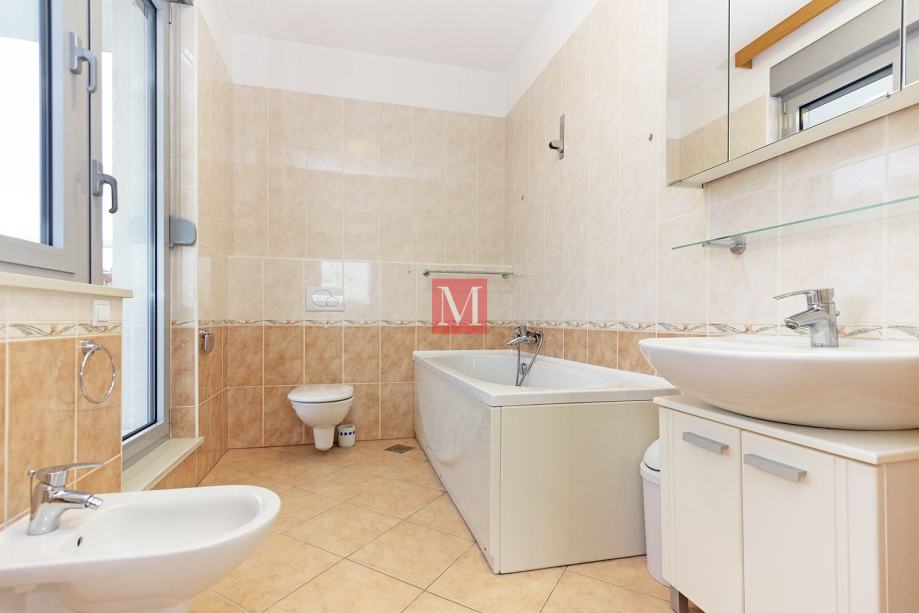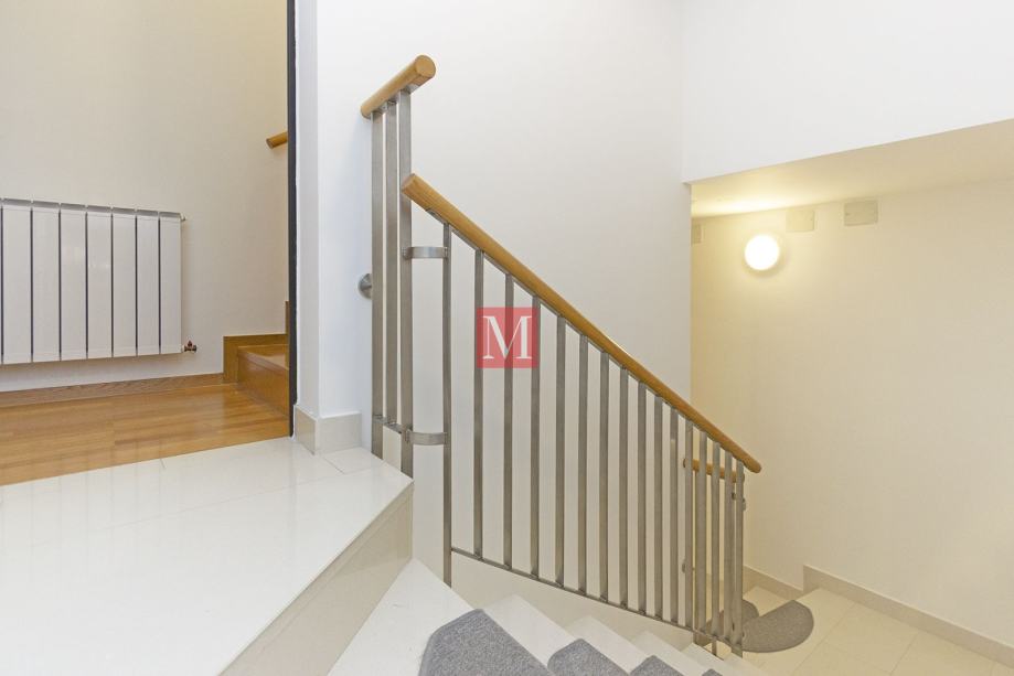Na gornjoj etaži /2.kat/ je glavna spavaća soba s kupaonicom, 3 dodatne spavaće sobe, 2 kupaonice i 2 terase s fantastičnim pogledom na grad.