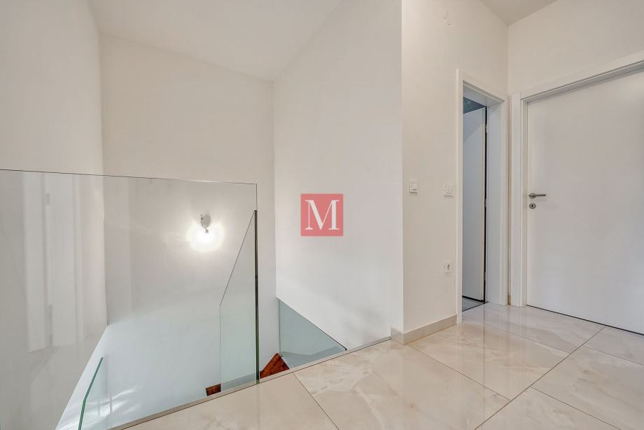 Kuća je puna svjetla zahvaljujući zapadnoj orjentaciji. Garaža za parking 1 manjeg automobila, i dodatan parking je moguć ispred garaže.