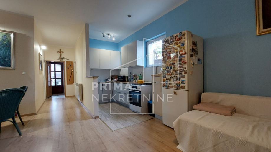 U suterenu se nalazi dnevni boravak s kuhinjom, dvije sobe i kupaonica, u visokom prizemlju dnevni boravak i kuhinja, spavaća soba, kupaonica i prostrana ostakljena blagovaonica s izlazom na terasu koja se proteže njezinom dužinom.