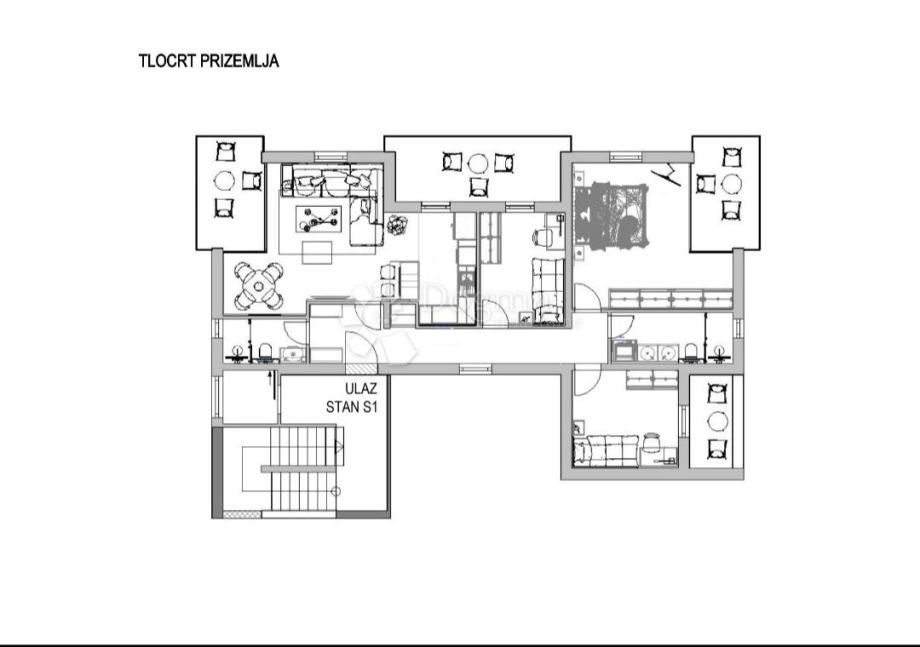 - prostrani dnevni boravak s kuhinjom i blagovaonicom (28,14 m²) te izlazom na dvije lođe