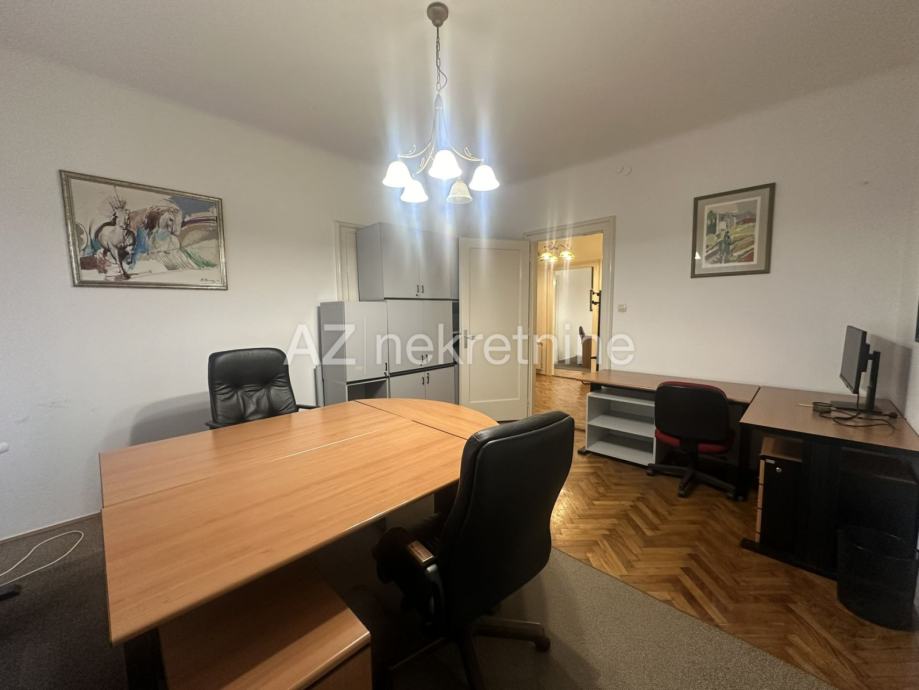 U manjoj zgradi u visokom prizemlju iznajmljuje se poslovni prostor namijenjen uredskom poslovanju s jednim do dva parkirna mjesta u dvorištu (u dvorištu zgrade ima jedno parkirno mjesto, ali moguće je parkirati i drugi auto, jedan iza drugog).