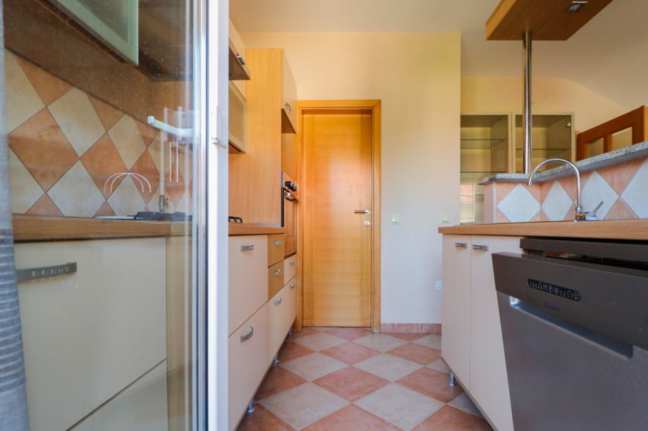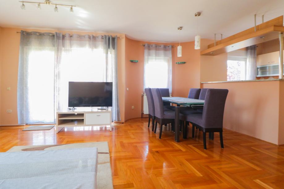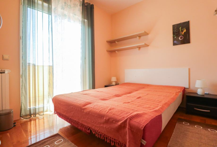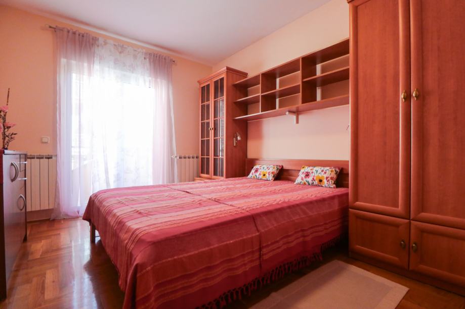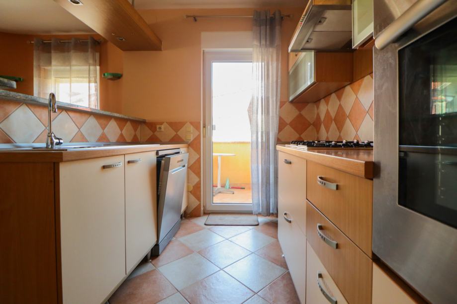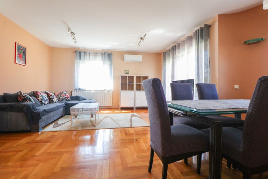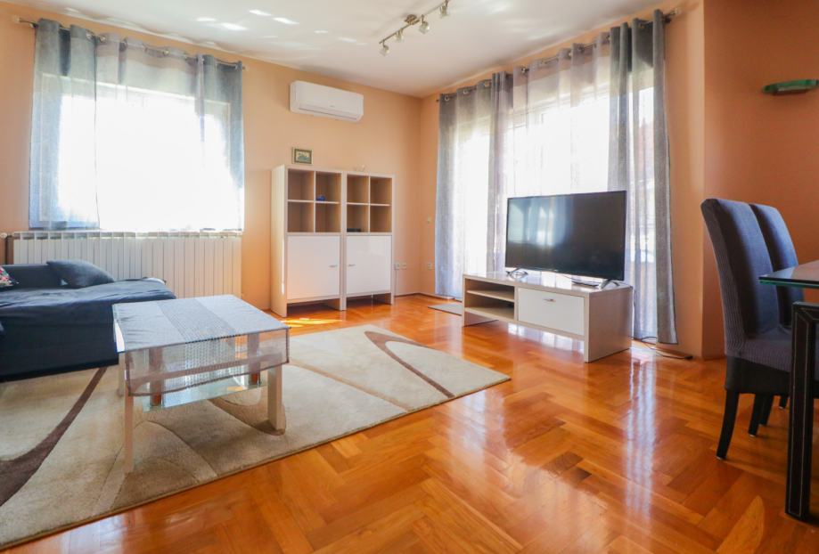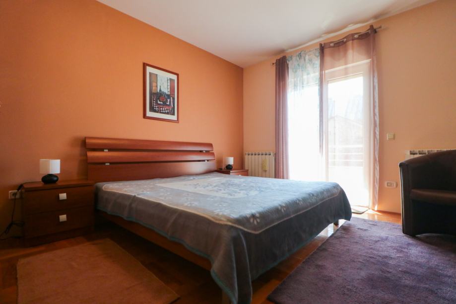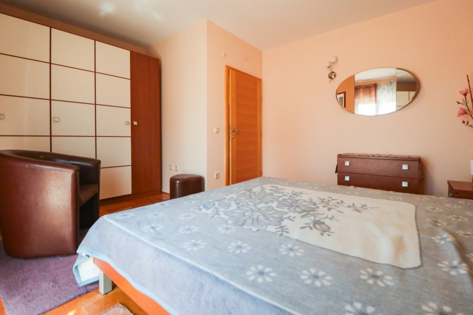 Stan je u potpunosti namješten i odlično opremljen - dva klima uređaja, centralni sustav usisavanja, video portafon, perilica posuđa, perilica rublja, pećnica, hladnjak sa zamrzivačem, mikrovalna pećnica, štednjak, napa, TV, kauč na razvlačenje, termostat, PVC stolarija, protuprovalna vrata, ugradbeni ormari i ormarići itd.
