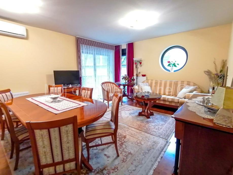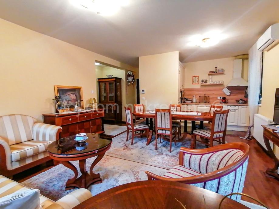 BEZ PROVIZIJE ZA KUPCE! <br /> Uvijek najpovoljniji !<br /><br /> Prodaje se namješten 2 soban stan s balkonom i vrtom. Nalazi se u visokom prizemlju manje stambene zgrade od 2 kata. Zbog svoje orijentacije izrazito je svijetao. Stan je opremljen klima uređajem, protuprovalnim vratima,talijanskim prvoklasnim parketom, PVC stolarijom s roletama (antracit). Nalazi se u mirnoj ulici, u blizini škole, vrtića, autobusne stanice, trgovine, te drugih bitnih sadržaja. Posjeduje spremište u podrumu. Stambena površina iznosi 46.56m2, 2 parkirna mjesta po 11.5m2, te vrt od 58.28m2.<br/><br /> Sastoji se od: