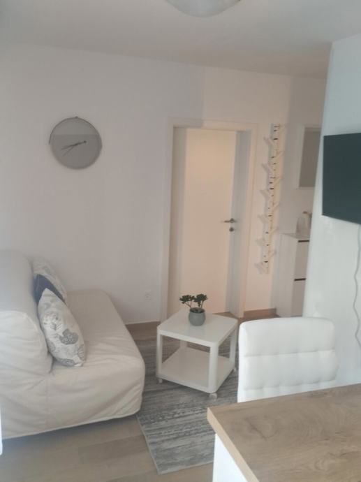 Stan se sastoji od ulaznog hodnika, kuhinje s blagovaonom i dnevnim boravkom, spavaće sobe te kupaonice. Namješten i opremljen aparatima, klima uređaj...