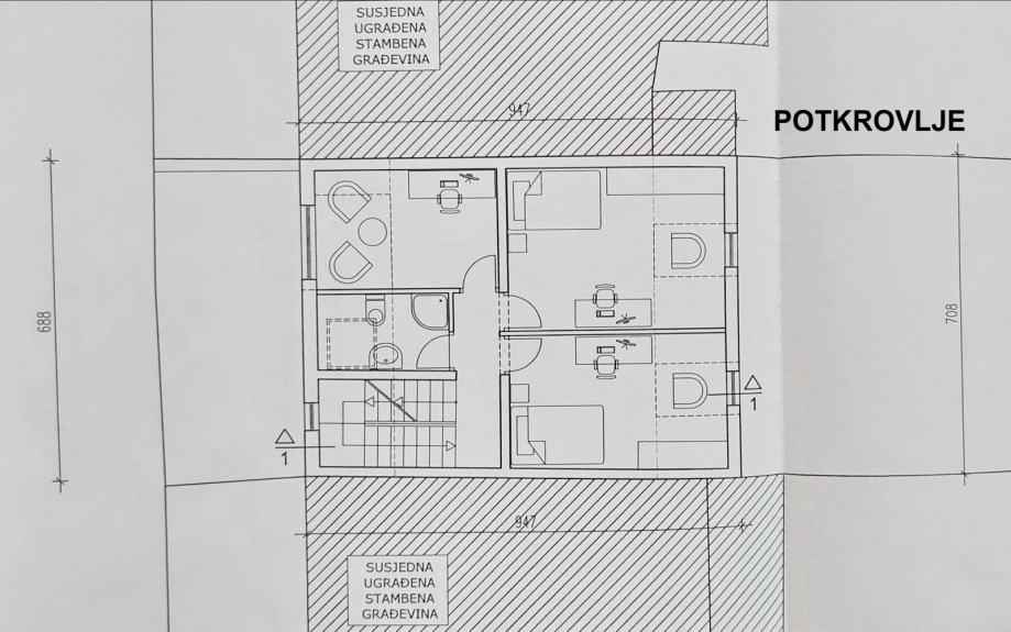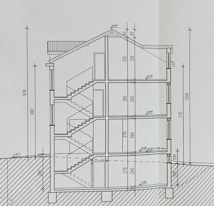 Podrum, prizemlje, 1. kat i potkrovlje (po etaži 66 m² BRP-a).