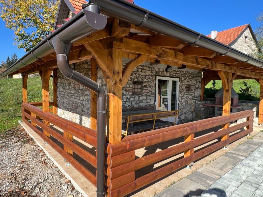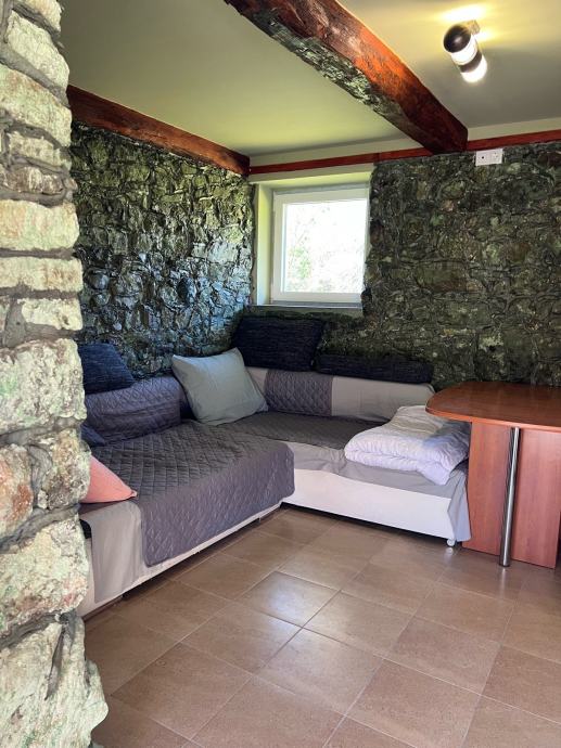 Kuća se sastoji od terase s roštiljem, 1 prostorije (kuhinja i boravak) i WC/kupaone.