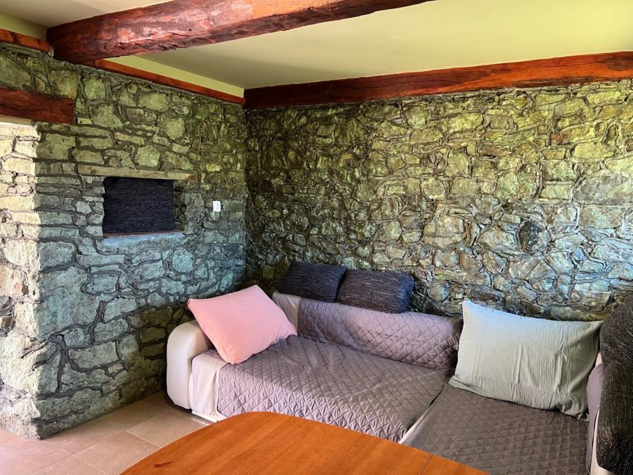 Podovi su keramika, zidovi kameni, grede drvene, krov crijep.