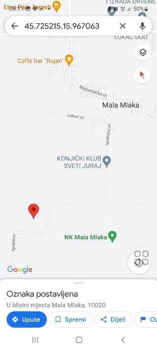 Zemljište je blizu nogometnog stadiona NK Mlaka. Sve komunalije vrlo blizu- voda, struja, kanalizacija, plin. Nalazi se na samom rubu građevinske zone, tako da bi i ovo zemljište u skoro vrijeme trebalo postati građevinsko.