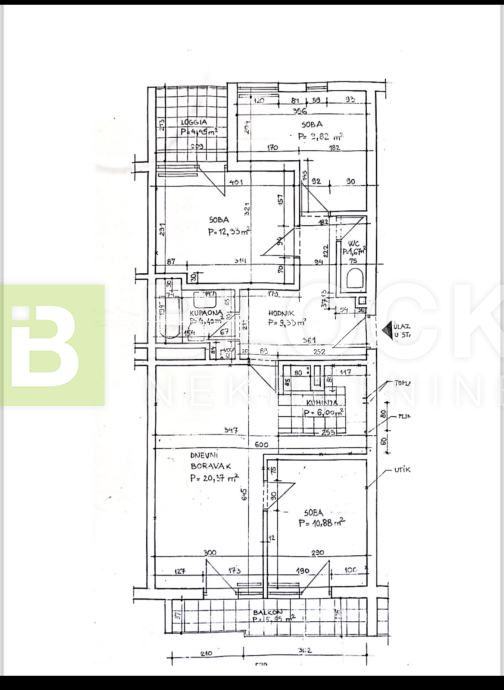 Stan se sastoji od tri spavace sobe, kupaonice sa WC om , dodatnim drugim WC-om,hodnika, kuhinje s blagavaonom, prostranog dnevnog boravka s izlazom na veliki balkon,zasebna spavaća soba ima izlaz na loggiu.