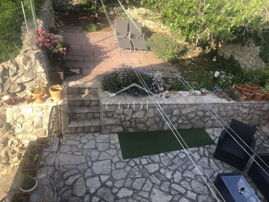 Okućnica je popločena kamenom, ograđena kovanim ogradama, uredna i redovno održavana, te je posađeno tipično primorsko bilje koje čini idealno mjesto za odmor na par stotina metara od rive. Također, na okućnici se nalazi i zidani roštilj.