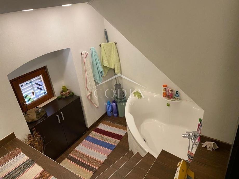 Na katu se nalazi drugi stan koji ima ulaz sa terase, te koji se sastoji od kuhinje i blagovaonice, dnevnog boravka s balkonom i pogledom na zelenilo, grad i zalazak sunca, prostrane kupaonice i stubišta koje vodi u potkrovlje gdje se nalazi radni kutak, još jedna kupaonica te 2 spavaće sobe. Pripada mu i ostava gdje se smjestila ostava sa bojlerom i perilicom veša.