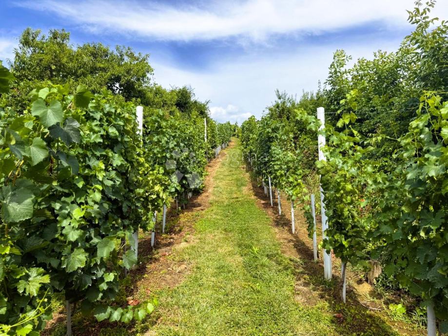 Na parceli od 1115 m² nalazi se mlad vinograd sa 90 trsova vinove loze, starosti od tri do deset godina, dovoljno za vlastitu proizvodnju vina. Osim vinove loze, tu je i voćnjak s jabukama, kruškama, trešnjama i marelicama, prava domaća voćna riznica.