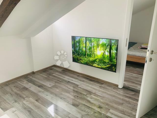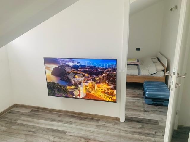 Stan se nalazi na drugom katu, odnosno u visokom potkrovlju zgrade i potpuno je namješten i vrlo skladan. Grijanje je podno, a ima i klimu.