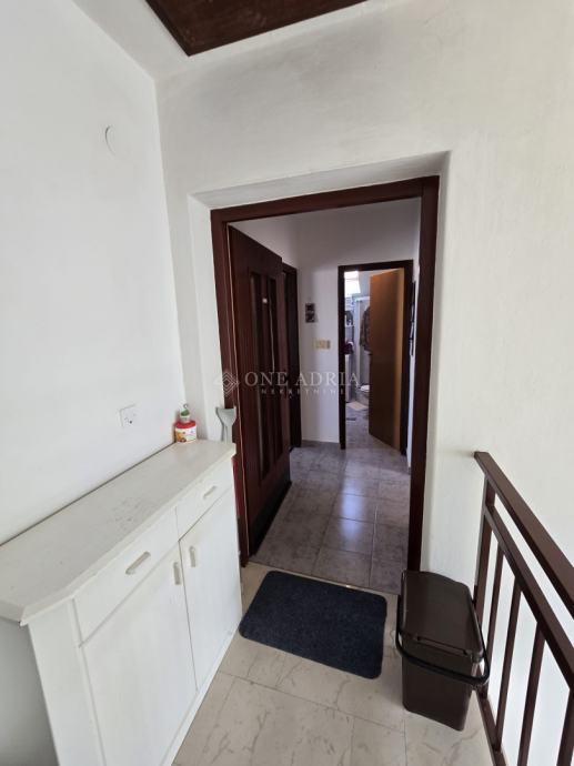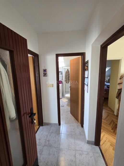 Prodaje se dvosobni stan površine 50 m², smješten na atraktivnoj lokaciji udaljenoj oko 350 metara od mora. Stan je funkcionalnog rasporeda i sastoji se od dvije spavaće sobe te dnevnog boravka koji je povezan s kuhinjom i ima izlaz na balkon, što prostoru daje dodatnu prozračnost i ugodnost. U sklopu apartmana nalazi se i spremište koje omogućuje dodatni prostor za odlaganje, kao i kupaonica te hodnik koji povezuje sve prostorije u cjelinu.