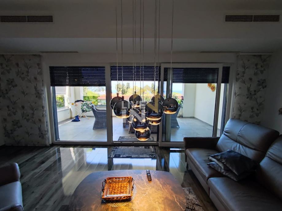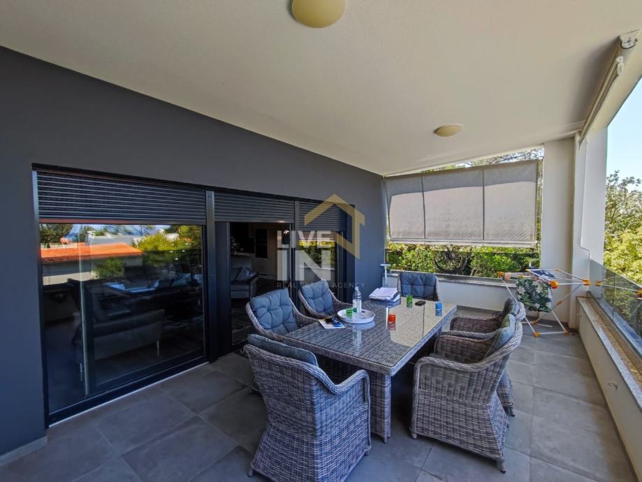 MALINSKA, PENTHOUSE u modernoj novogradnji na odličnoj lokaciji samo 150 metara od plaže, površine 130 m2, 30m2 terasa, s pomoćnim objektom 60 m2 na okućnici zgrade. Stan se sastoji od dnevnog boravka sa kuhinjom i blagovaonicom, tehničke prostorije, WC – a, 3 spavaće sobe i 2 kupaonice, 3 terase...