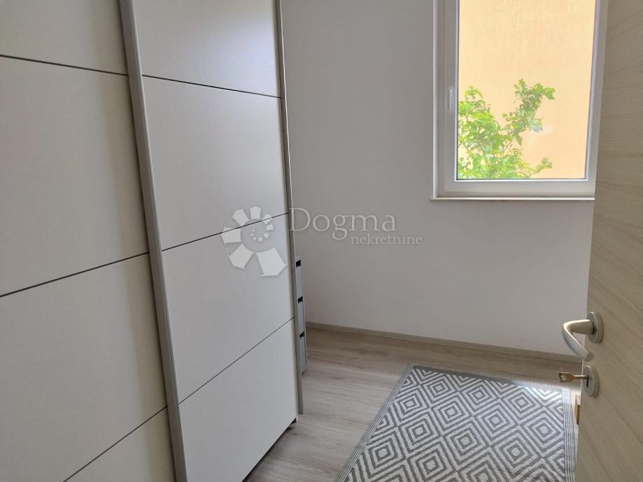 Sastoji se od kuhinje, blagovaone, dnevnog boravka, kupaone i dvije spavaće sobe te ima izlaz na terasu od 12 m2.