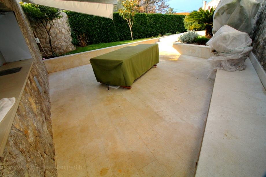Svakako je za napomenuti da vlasništvo opisanog apartmana uz sebe veže i dobro organiziranu okućnicu s opremljenim grill prostorom. U pripadajućoj garaži, kao i na okućnici predmetnog apartmana, moguće je parkiranje više vozila. Povrh navedenih značajki, ovaj je apartman vrlo dobro orijentiran i nudi lijep pogled na more i primorje.