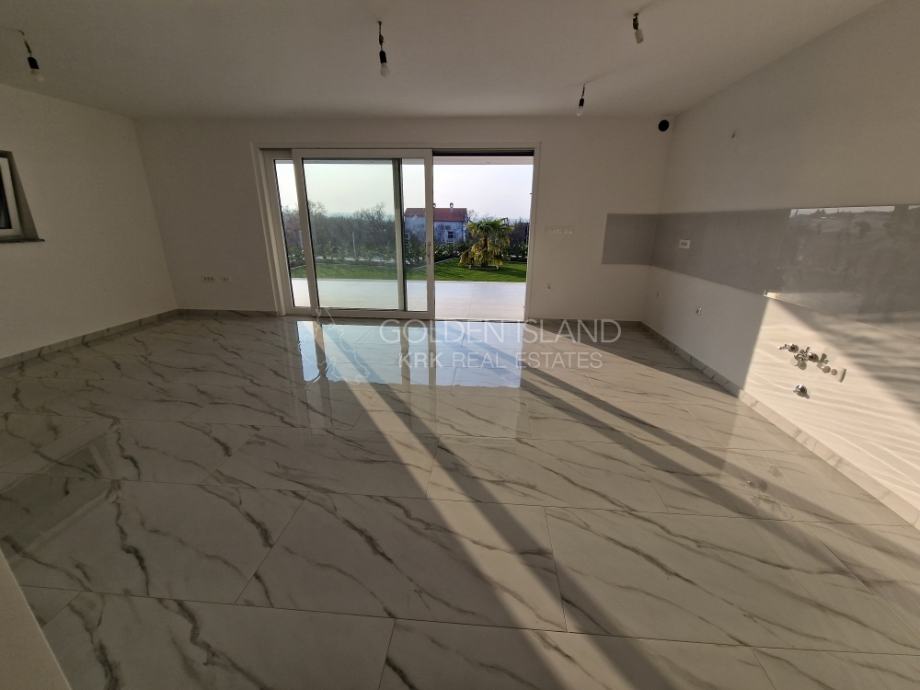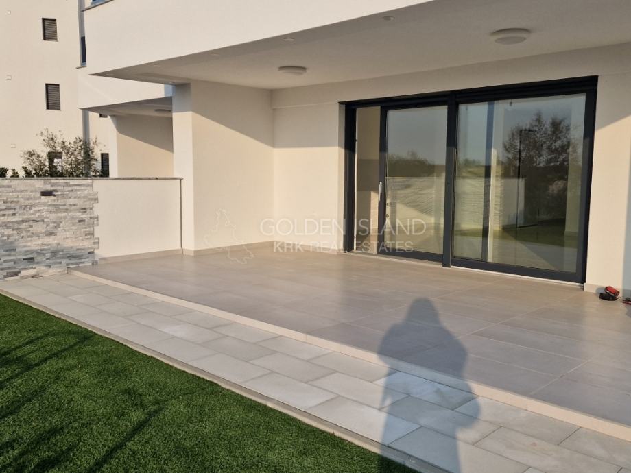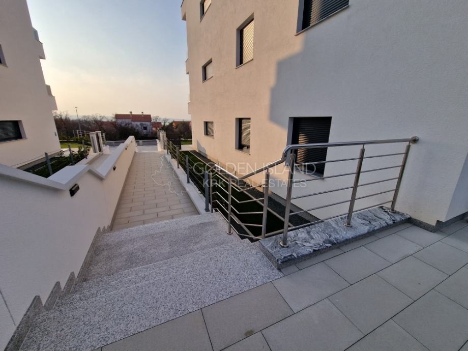 Stan S1 u novoj zgradi površine 140 m2, a sastoji se u naravi od dva stana po 70 m2. Stan u prizemlju površine 70 m2, sastoji se od 2 spavaće sobe, kupaonice, kuhinje, blagovaonice i dnevnog boravka open space tlocrta, sa izlazom na veliku terasu sa vrtom površine 70 m2 sa zelenilom.Poseban ulaz u prizemli stan.