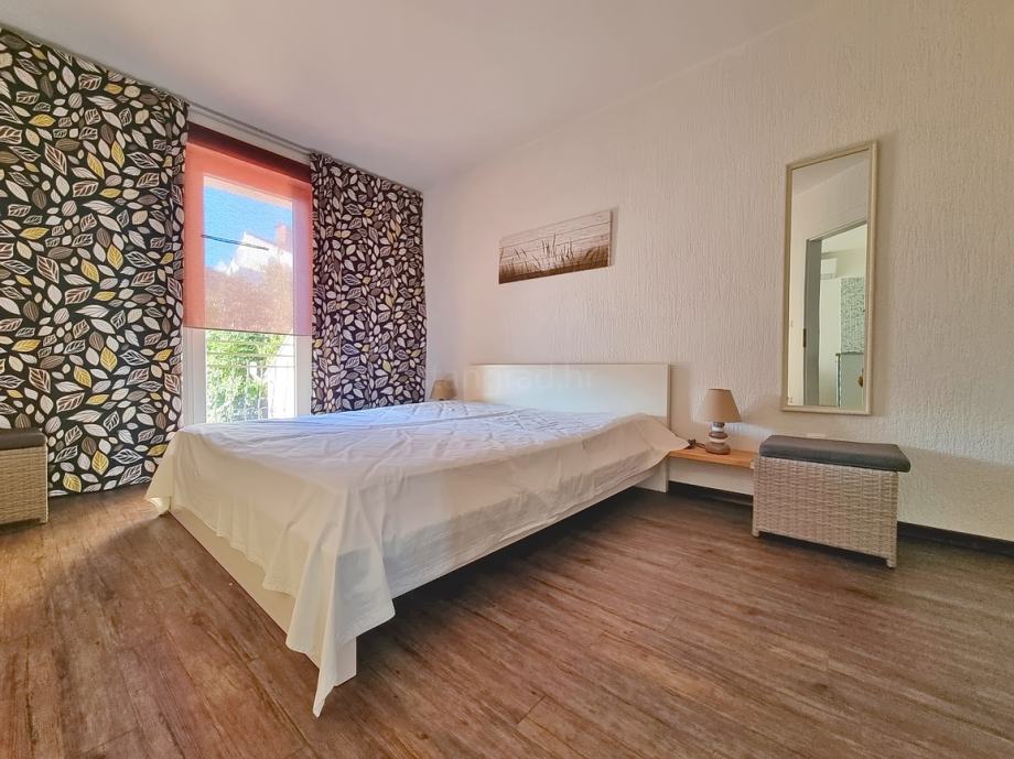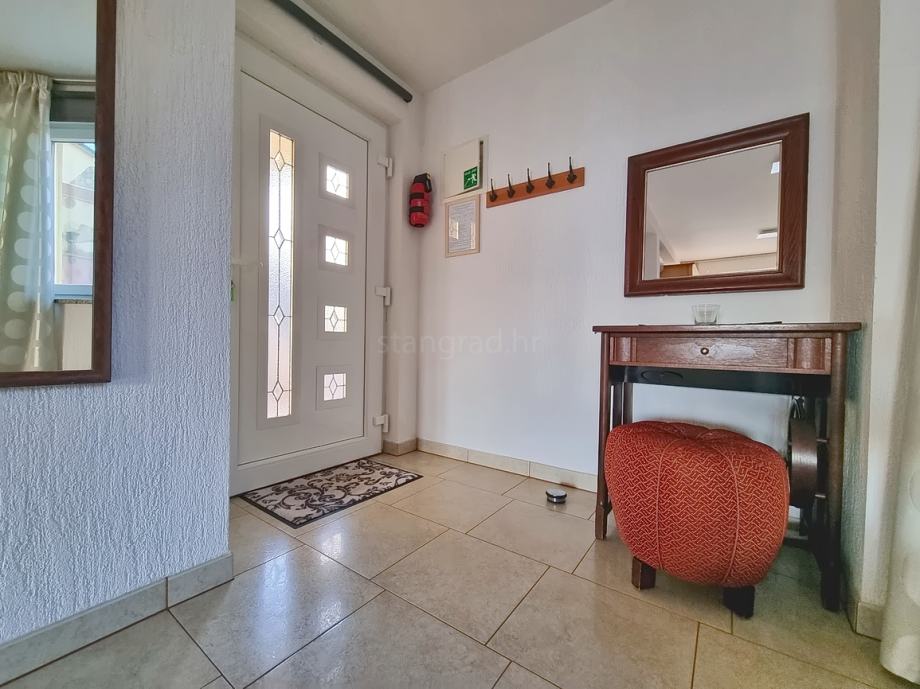 U ponudi naše agencije na super atraktivnom sjevernojadranskom području otok Krk prodaju se dva potpuno uređena apartmana koji pružaju savršen ugođaj provođenja godišnjih i vikend odmora. Ovi apartmani su smješteni na odličnoj i rijetko dostupnoj lokaciji u samoj blizini mora te na pješačkoj udaljenosti od središta mjesta Malinska i ključnih životnih sadržaja. Prema vrsti nekretnine, ovo su manji jednoetažni apartmani. U okviru vrlo lijepe građevine, apartmani su pozicionirani u visokom prizemlju. Ukupna stambena površina apartmana je 58 m2. Tom površinom obuhvaćene su dvije zasebne stambene jedinice, od toga je jedan studio apartman s kupaonicom, a drugi apartman s jednom spavaćom sobom, kupaonicom, dnevnim boravkom i kuhinjom. Oba apartmana imaju izlaz na terasu površine cca 26 m2. Unutarnji prostori nekretnine su osobito dobro održavani te u potpunosti opremljeni potrebnim tehničkim uređajima i vrlo kvalitetnim namještajem. Za napomenuti je svakako i to da opisanom apartmanu pripada dio okućnice površine 40 m2 s roštiljem. Vlasnik apartmana na raspolaganju će imati jedno parkirno mjesto. Povrh ranije opisanih svojstava, nekretnina je vrlo dobro orijentirana te pruža primamljiv pogled iz apartmana na more i prirodni krajolik. Ovaj je apartman vlasništvo fizičke osobe pa je kupac prilikom prijepisa njegovog vlasništva na svoje ime u obvezi plaćanja poreza na promet u visini 3%. Vlasnik nekretnine garantira za urednost relevantnih vlasničkih dokumenata i mogućnost brzog transfera vlasništva apartmana na kupca. Očekujemo vas na Kvarneru, na adresi ureda na otoku Krku. Odlučite li se za suradnju s nama, posrednički ured Stan Grad Immobilien će vam sa zadovoljstvom pomoći prilikom prijenosa vlasništva nekretnine i pripadajućih komunalnih priključaka.