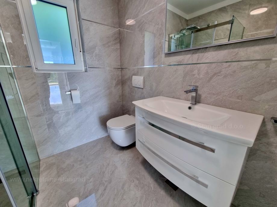 U ponudi agencije Stan Grad Immobilien nalazi se super atraktivan apartman u regiji Otok Krk. Luksuzni stan nalazi se na kvalitetnoj lokaciji mjesta Malinska i blizu svih potrebnih sadržaja. U modernom objektu, stan je smješten na prizemnoj i prvoj etaži stambene zgrade. Apartman ima ukupnu površinu od 159,70 m2. Unutar navedene površine su u prizemnom stanu, koji se vodi u zemljišnim knjigama kao spremište, obuhvaćeni dnevni boravak i kuhinja, hodnik, 2 spavaće sobe, kupaonica i natkrivena terasa. Isti raspored prostorija je u stanu na prvom katu. Apartmanu pripada lijepo uređena okućnica od 100 m2 i dva parkirna mjesta. Osim toga, ovaj apartman ima djelić pogleda na more i priobalje. Ova nekretnina je u vlasništvu fizičke osobe. Prodavatelj garantira uredne dokumente i promptan prijenos vlasništva apartmana na kupca. Agenti ureda Stan Grad Immobilien će vam pomoći pri uknjižbi i svim ostalim administrativnim poslovima.