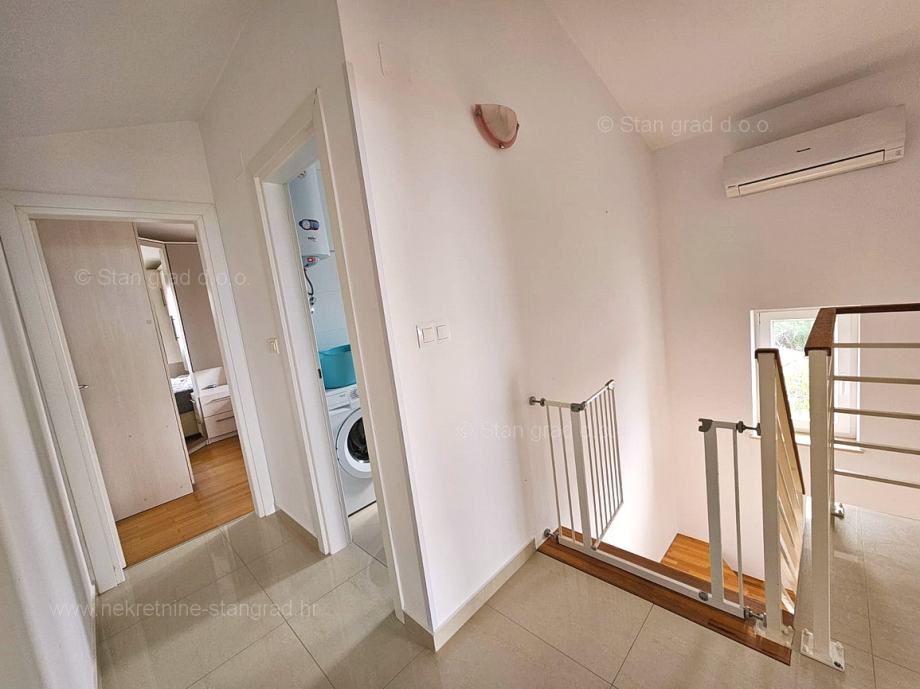 U agenciji Stan Grad Immobilien na prodaji je zanimljiv apartman za odmor unutar tradicionalno najtraženijeg hrvatskog primorskog jadranskog područja otok Krk. Ovaj je apartman sagrađen na kvalitetnoj lokaciji na području mjesta Malinska, nedaleko mora i sadržaja potrebnih za turistički boravak i svakodnevni život. Po vrsti nekretnine, to je dvoetažni apartman s unutarnjim stepenicama i ulaznim prostorom na nižoj etaži. U vrlo dobrom i kvalitetnom objektu, apartman je smješten na 1. i 2. etaži. Apartman obuhvaća ukupnu površinu od približno 100 m2. Ovom površinom su obuhvaćeni ulazni prostor. dnevni boravak i kuhinja s blagovaonicom, wc i natkrivena terasa na 1. katu, a na 2. katu smješteni su hodnik, kupaonica, 3 spavaće sobe i terasa. Unutarnji prostori nekretnine su osobito dobro održavani te u potpunosti opremljeni potrebnim tehničkim uređajima i vrlo kvalitetnim namještajem. Vlasnik apartmana može neometano koristiti sve pripadajuće zajedničke dijelove i prostore nekretnine. U vlasništvu ovog apartmana je uređen parkirni prostor za parkiranje dva automobila. Uz prethodno navedene značajke, ovaj je apartman iznimno lijepo orijentiran te ima očaravajući panoramski pogled na more s terase na 2. katu. Predmetni je apartman u vlasništvu fizičke obveze i kod prijenosa vlasništva podliježe obračunu poreza na promet nekretnina u visini 3%. Prodavatelj jamči za urednost relevantne tehničke i vlasničke dokumentacije, kao i za mogućnost brzog i nesmetanog prijenosa vlasništva apartmana na kupca. Obratite nam se s povjerenjem na adresi poslovnice na otoku Krku i bit ćemo vaš partner za sigurnu kupnju nekretnine na Kvarneru. Kupcu ove nekretnine će prodajni tim agencije Stan Grad Immobilien rado pomoći kod prijenosa vlasništva nekretnine u zemljišnu knjigu te prijenosa računa za struju, vodu i odvoz smeća na svoje ime.