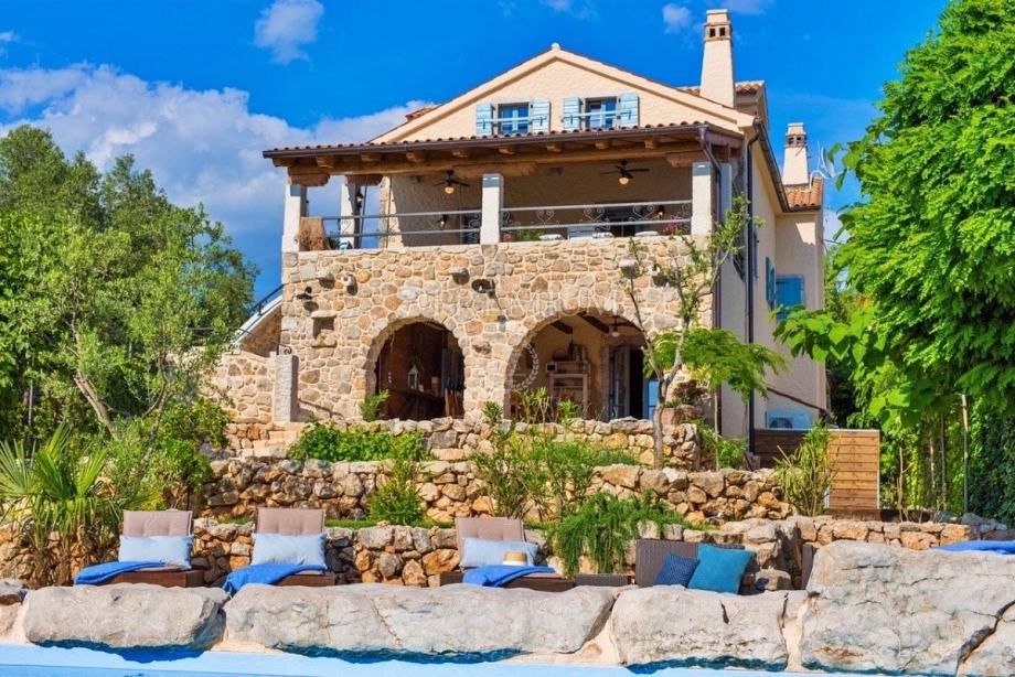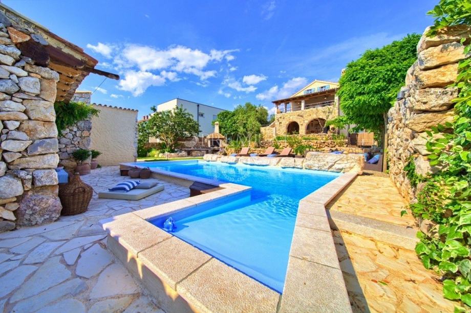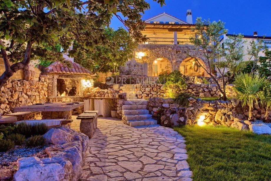 Malinska, dvojna kamena kuća u rustikalnom stilu s bazenom! (prodaja)