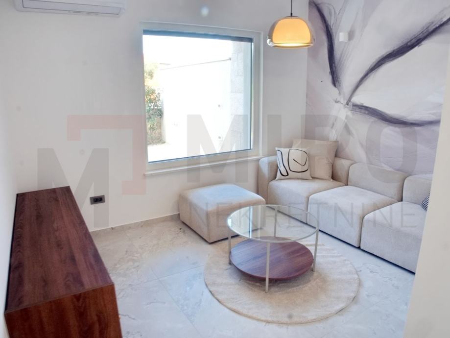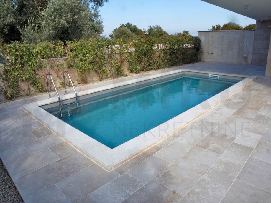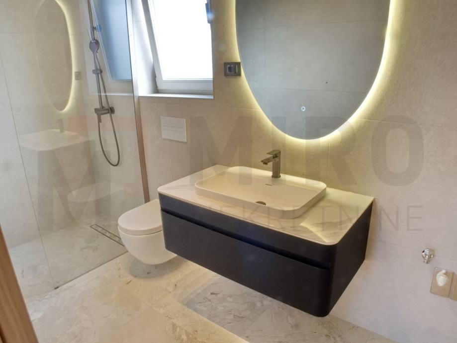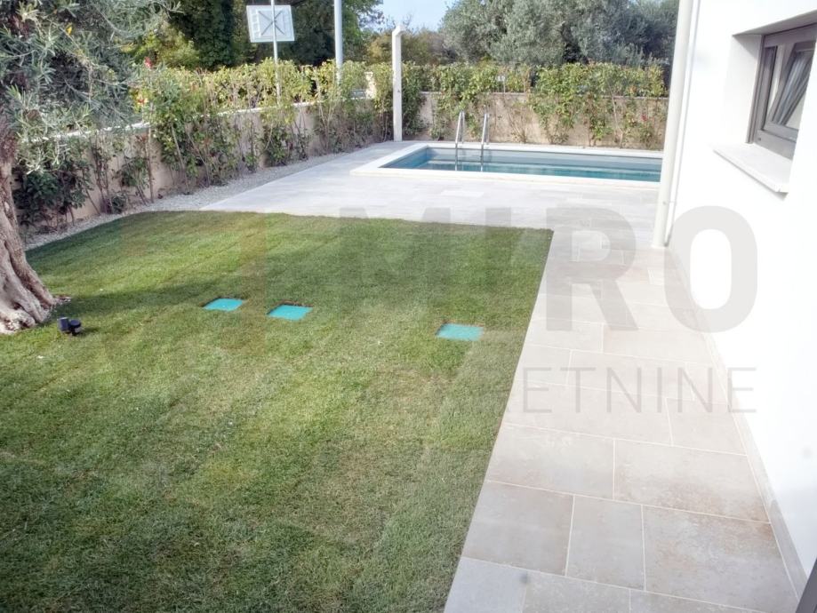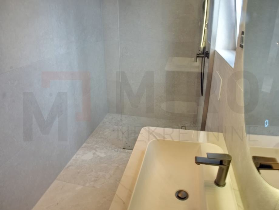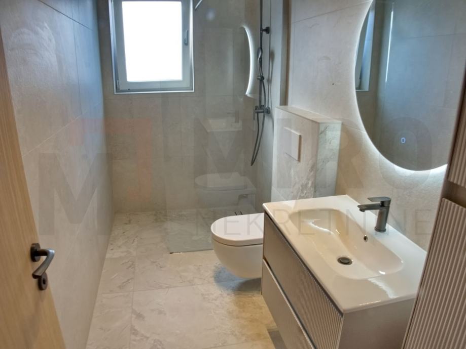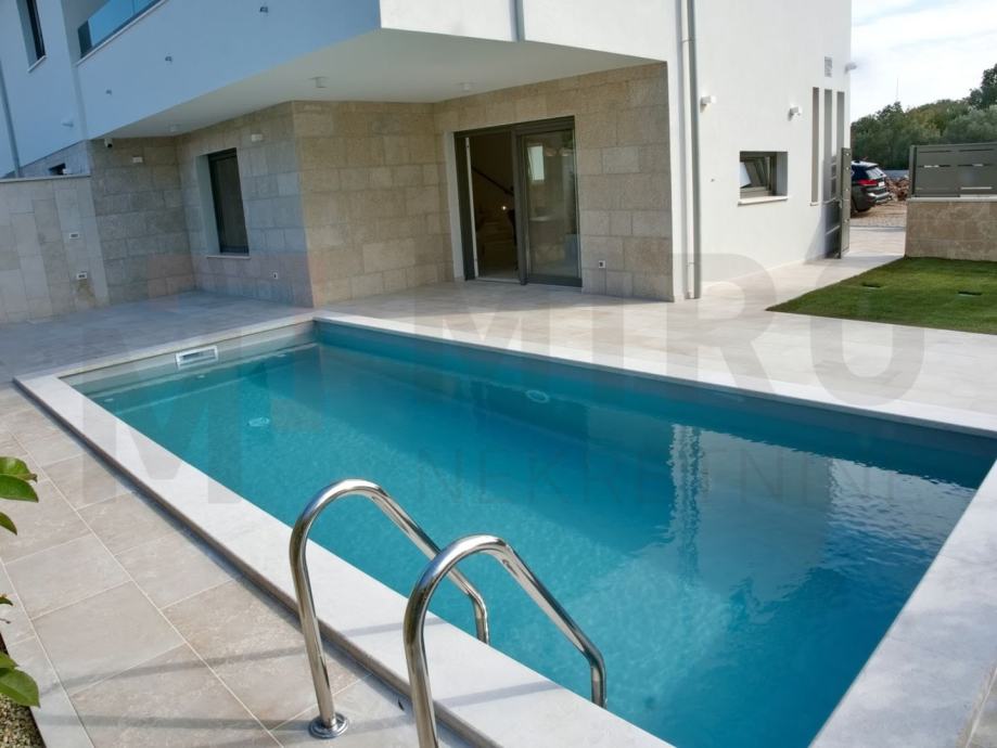 Otok Krk, Malinska, prodaje se moderano namještena dvojna kuća s privatnim bazenom, smještena u mirnom dijelu okolice Malinske, nedaleko od mora. Nova dvojna kuća ukupne stambene površine od 109 m2. Prizemlje se sastoji od natkrivenog ulaza koji vodi u prostrani hodnik, a tu su i gostinjski WC te ostava. Središnji dio prizemlja čini otvoreni prostor u kojem se nalaze kuhinja, blagovaonica i dnevni boravak s izlazom na natkrivenu terasu. S terase se ide prema bazenu i sunčalištu. Unutarnje stepenice vode na prvi kat, gdje su smještene tri spavaće sobe. Master spavaća soba ima vlastitu kupaonicu i izlaz na natkrivenu terasu. Kvalitetna gradnja i oprema: podno grijanje (Vaillant dizalica topline), klima uređaji (Toshiba), električne rolete, grijani bazen s elektrolizom. Dva parkirna mjesta. Završetak gradnje planiran je za kraj 2025. Nekretnina je u sustavu PDV-a i kupac ne plaća porez na promet nekretnina. Prodavatelj jamči čistu vlasničku dokumentaciju zemljišta. Posjetite nas i pronađite kvadrat vašeg doma!