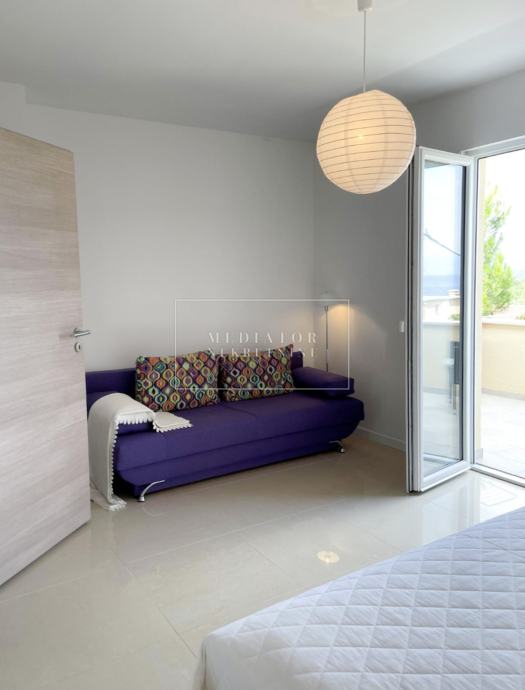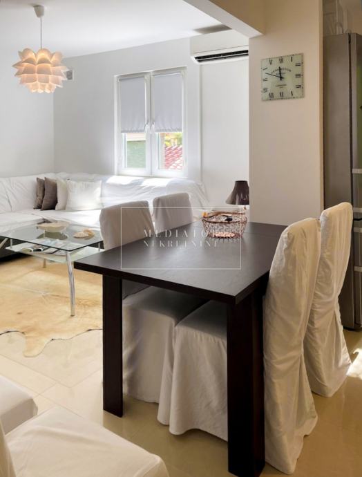 U ponudu Mediator nekretnina smo dobili smo izuzetno atraktivan, moderno adaptiran dvosobni stan koji spaja suvremeni dizajn, funkcionalnost i pogled na more. Smješten na prvom katu uredno održavane višestambene zgrade, stan ukupne površine 100 m² nudi izvrsnu kombinaciju prostranosti, komfora i životne kvalitete – bilo da se traži idealna nekretnina za boravak tijekom cijele godine, sezonsko uživanje ili sigurnu investiciju za turistički najam.