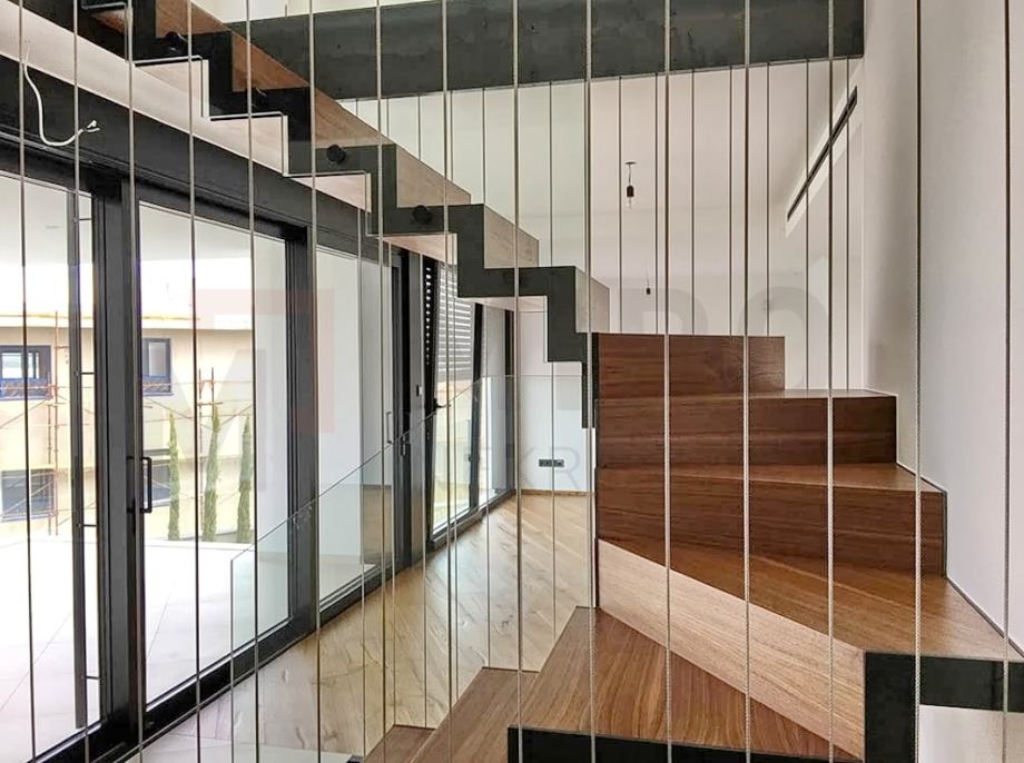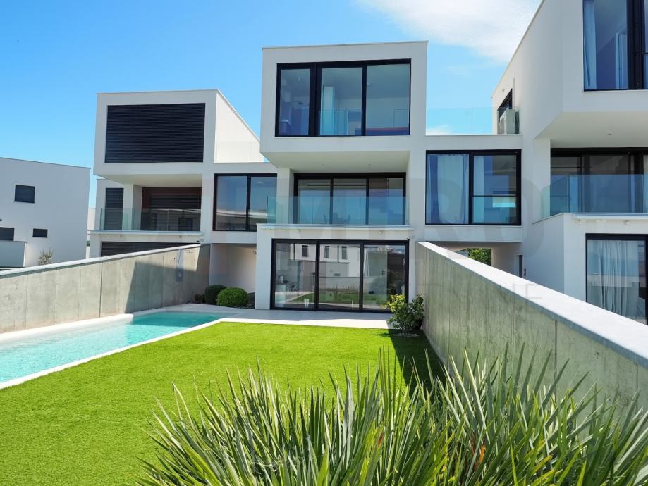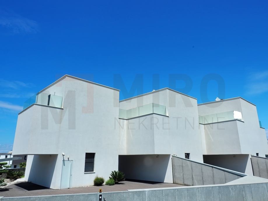 Otok Krk, Malinska, na iznimno atraktivnoj lokaciji svega 200 m od mora prodaje se u originalnom stilu projektirana i izvedena vila u nizu s okućnicom i bazenom. Površina ove zanimljive troetažne vile je 180 m2 a površina okućnice s bazenom je 252 m2. Vila je izvedena kombiniranjem najmodernijih materijala i projektantskih rješenja. Kuća je izgrađena kao „pametna“ niskoenergetska kuća sa otvorenim pogledom na more već s prizemne etaže. Opremljena je najkvalitetnijim sustavom za hlađenje i grijanje, podnim grijanjem, daljinskim upravljanjem grijanjem-hlađenjem, aparatima i elektroinstalacijama, video nadzorom, alarmnim sustavom, vatrodojavom. Nekretnina ima i grijani bazen. Objekat ima puno površina od prirodnog kamena ali i staklenih stijena ( Schüco stolarija) koje otvaraju pogled prema moru, termo fasada je StoTherm debljine 20 cm. Po svim parametrima ovo je vila koja zadovoljava najviše standarde moderne gradnje. Sastavljena je od po 2 dnevna boravka sa kuhinjama i blagovaonama, 3 spavaće sobe, 3 kupaonice, wc-a, 3 prostrane terase, hodnika i spremišta. Vila pruža privatnost onima koji će u njoj boraviti. Vlasnička okumentacija kuće je kompletna, prodavatelj jamči uredan i brz prijenos vlasništva na kupca nekretnine. Posjetite nas i pronađite kvadrat vašeg doma!
