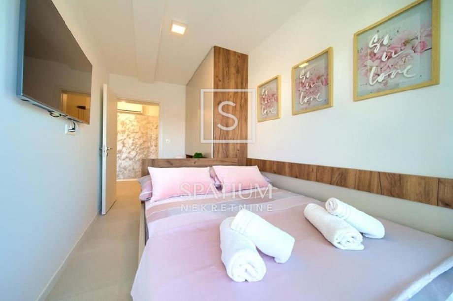 Ovaj potpuno namješten, moderno uređen i spreman za korištenje stan smješten je u mirnom djelu, nedaleko od mora i plaže te je odličan izbor za obiteljsko korištenje ili turističku djelatnost.