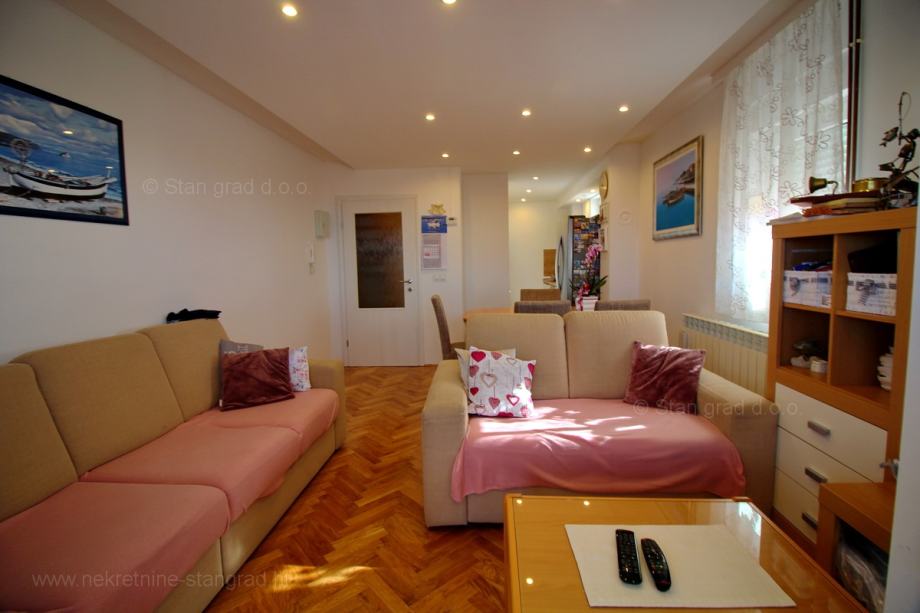Agencija Stan Grad Immobilien prodaje apartman na odličnoj lokaciji u regiji Otok Krk. Navedeni apartman se nalazi na vrlo lijepoj poziciji nedaleko mora i centra mjesta Malinska. U okviru vrlo lijepe građevine, stan je pozicioniran na etaži 2. Ukupna površina ove nekretnine iznosi 105 m2. Navedenom površinom su obuhvaćeni na 2. katu dnevni boravak i kuhinja, 1 sp.s., 1 kup.,1 terasa s pogledom na more. U visokom potkrovlju od 52 m2 se nalaze još 3 spavaće sobe s wc-om i kotlovnica. Apartman je kompletno preuređen i nenamješten. U okviru vlasništva nekretnine, novi vlasnik stana raspolagati će jednim parkirnim mjestom. Osim navedenog, opisani apartman ima lijep pogled na more. Ova nekretnina je u vlasništvu fizičke osobe. Prodavatelj stana jamči urednu vlasničku dokumentaciju te brz prijenos vlasništva nekretnine. Agenti posredničkog ureda Stan Grad Immobilien pomoći će vam u kupoprodaji i prijenosu vlasništva apartmana.