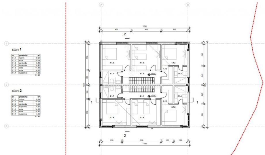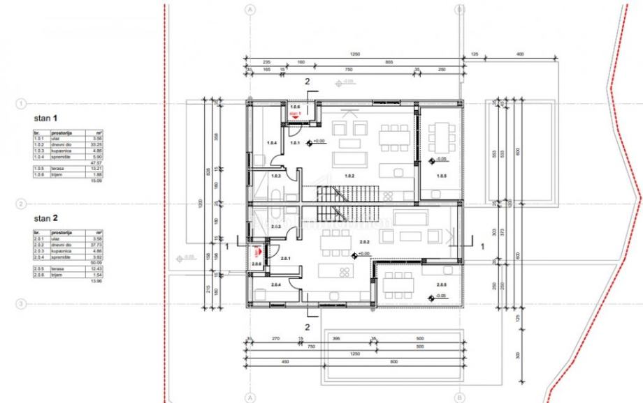 Prodaje se dvojna kuća površine 118,77 m2 + terasa + balkon. Kuća se sastoji od prizemlja i kata. U prizemlju je prostrani dnevni boravak s kuhinjom i blagovaonom, kupaonica, spremište i natkrivena terasa. Na katu su tri spavaće sobe, od kojih jedna ima vlastitu kupaonicu i garderobu, a drugu kupaonicu dijele preostale dvije sobe.