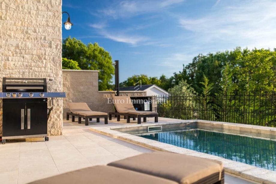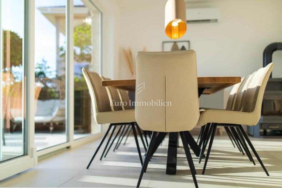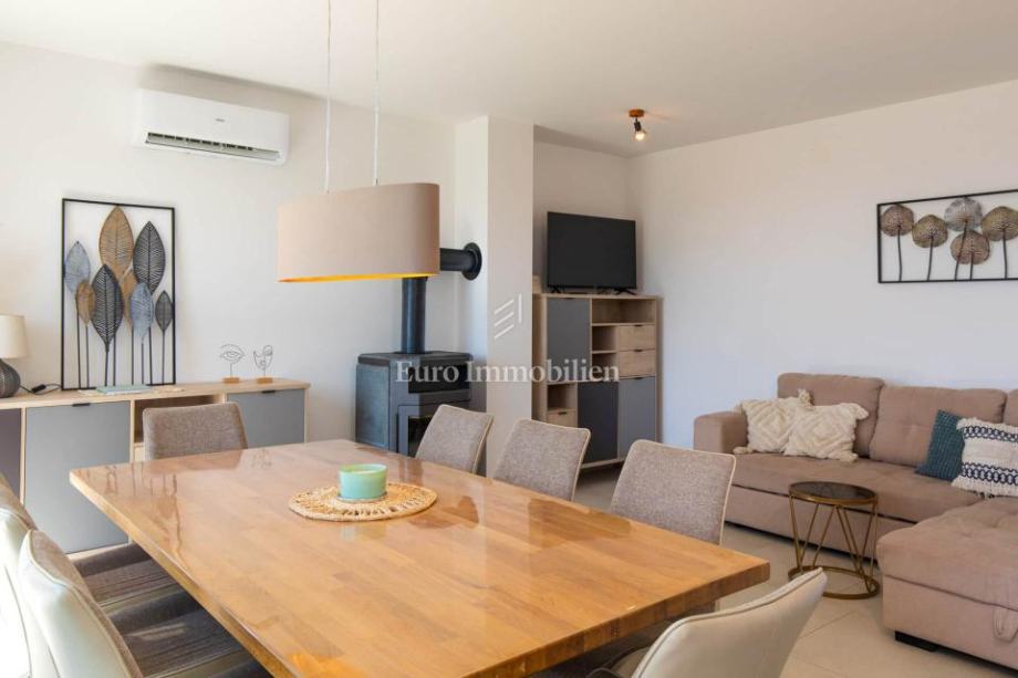 Kuća je u potpunosti namještena i opremljena, klimatizirana, podno grijanje, peć na drva.