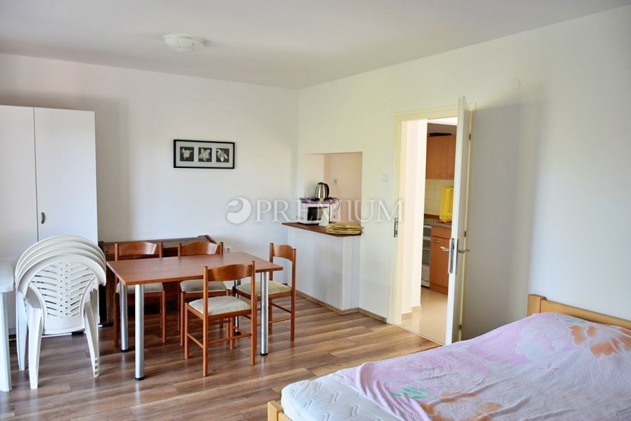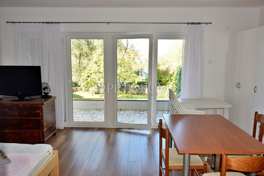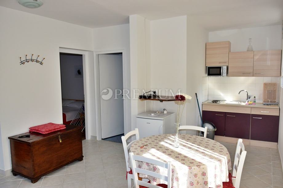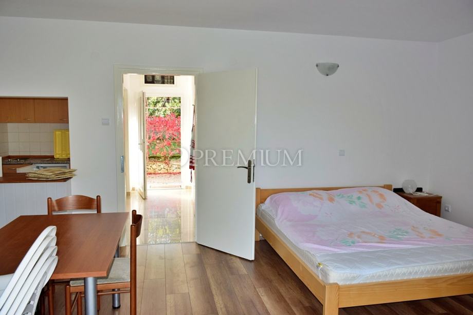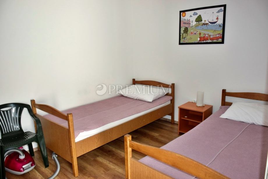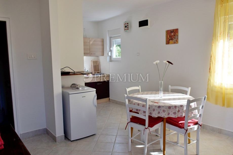 U prizemlju se nalazi apartman s kupaonicom, spavaćom sobom, kuhinjom, blagovaonom i dnevnim boravkom s izlazom na natkrivenu terasu.