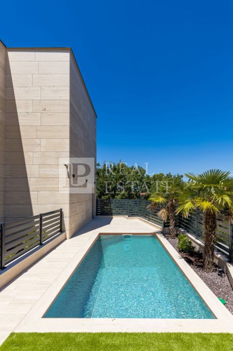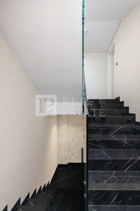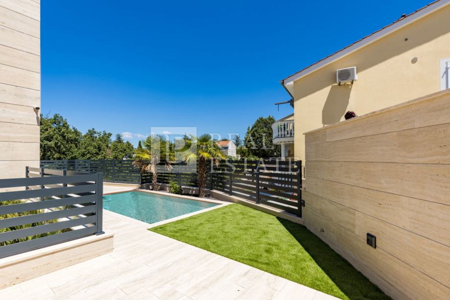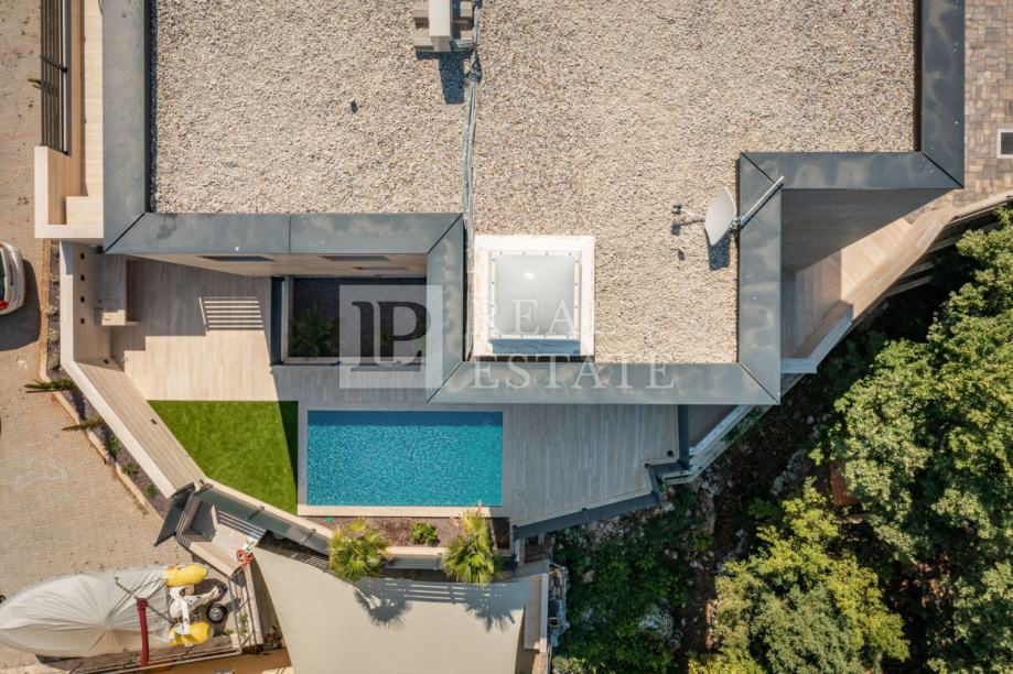 Zgradu čine tri stambene jedinice, a na svakoj etaži nalazi se po jedan trosobni stan s terasom od 26 m2. S obzirom na konfiguraciju terena, svaki stan ima svoj ima i vlastiti bazen na svojoj privatnoj okućnici.