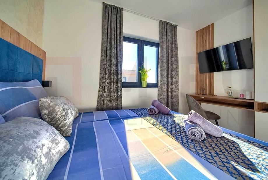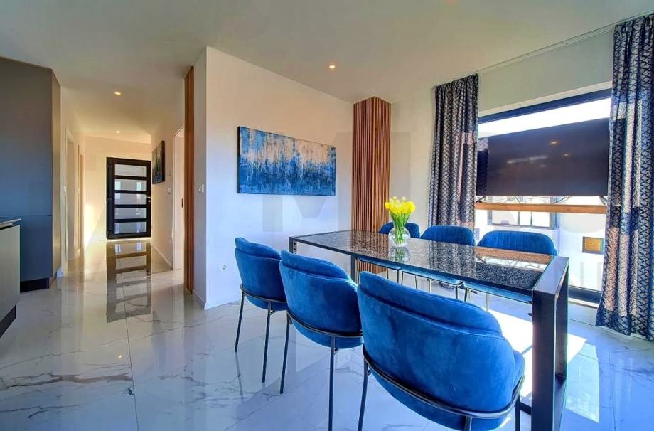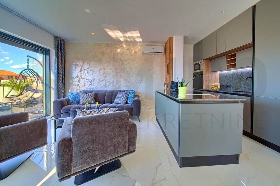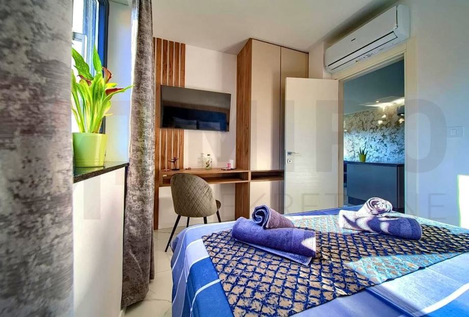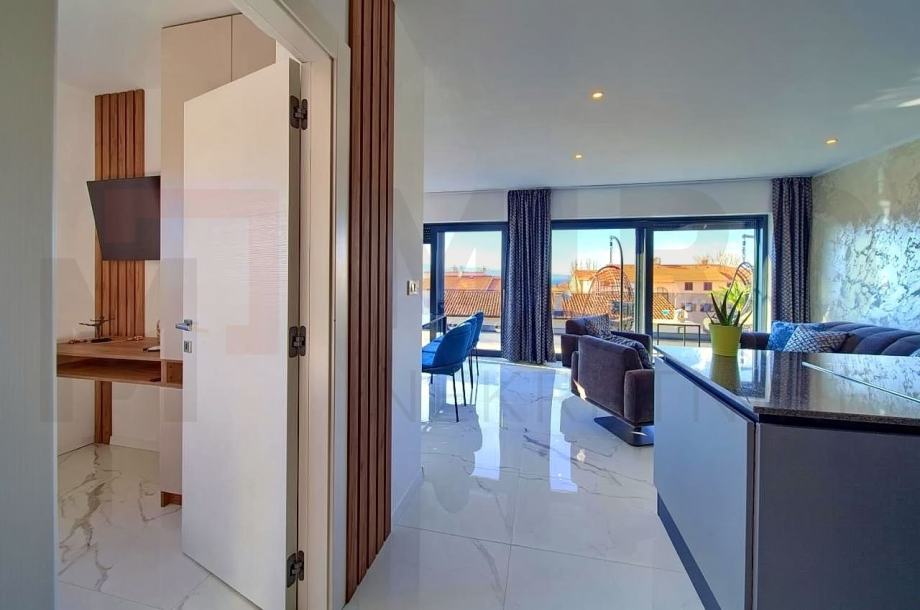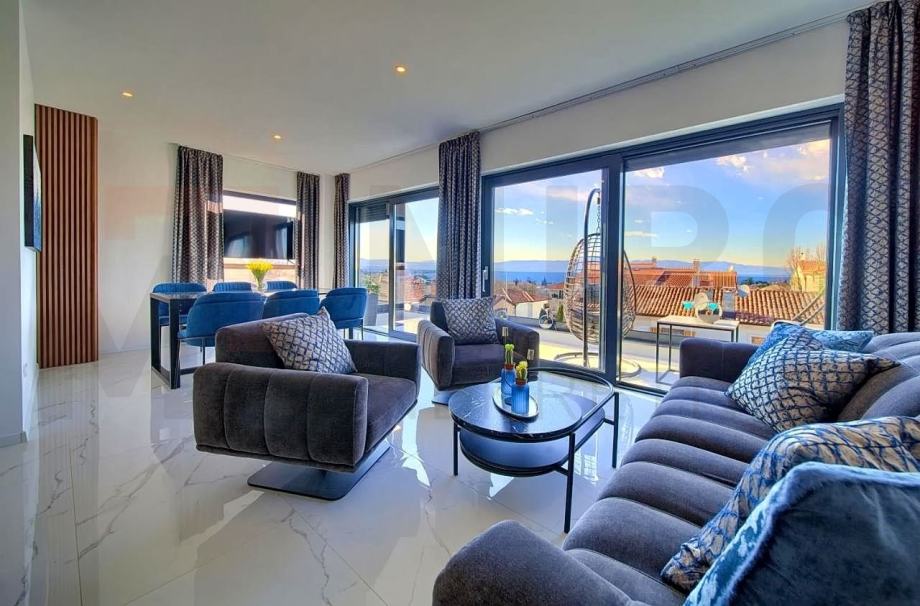 Otok Krk, Malinska u ppnudi je prostrani penthouse, u naravi cijela etaža drugog kata stambene zgrade sa dva odvojena apartmana, ukupne stambene površine 96 m2. Veći apartman sastoji se od ulaznog hodnika, dvije spavaće sobe, kupaone, dnevnog boravka sa kuhinjom i blagovaonom te terase s pogledom na more. Manji apartman obuhvaća ulazni prostor, kupaonu, spavaću sobu, kuhinju s blagovaonom i dnevni boravak s izlazom na balkon s pogledom na more. Pripada im uređena okućnica od 15 m2 i jedno parkirno mjesto na zajedničkom dvorištu kuće. Multisplit klimatizacija prostorija grijanje/hlađenje, podno grijanje te moderne sanitarije i podne obloge samo su neke od obilježja ovih lijepih apartmana. Prodaju se kompletno opremljeni kvalitetnim namještajem po mjeri i električnim uređajima te su odmah spremni za useljenje. Nalazi se mirnoj lokaciji svega 800 m od lijepih plaža i centra sa svim potrebnim sadržajima. Odlična prilika za vlastito stanovanje ili za turistički najam. Apartman je u vlasništvu fizičke osobe i kupac je u obvezi plaćanja poreza na promet nekretnine u visini 3%. Prodavatelj nekretnine jamči urednu vlasničku dokumentaciju. Posjetite nas i pronađite kvadrat vašeg doma!