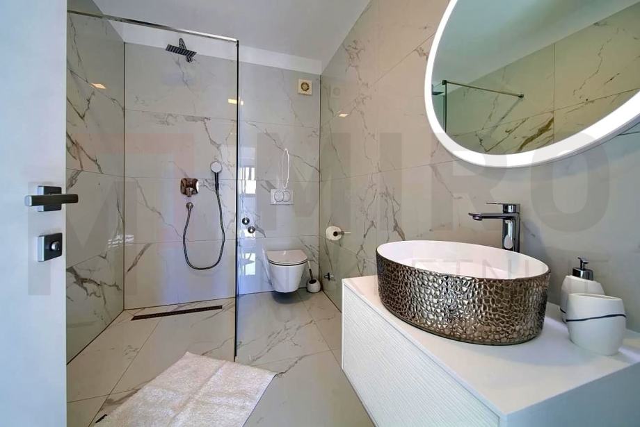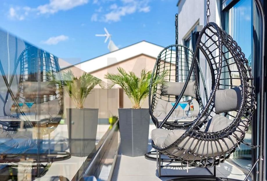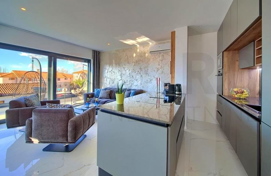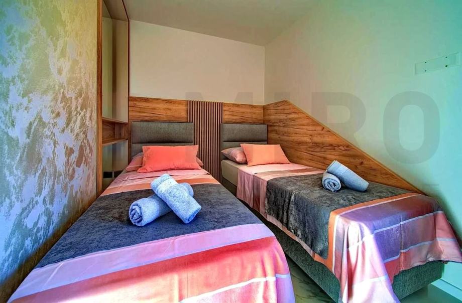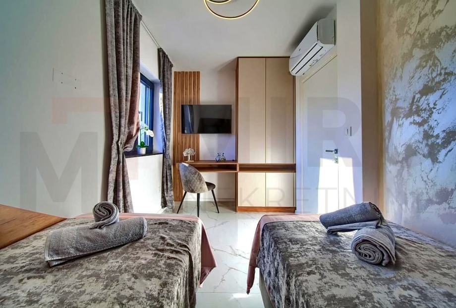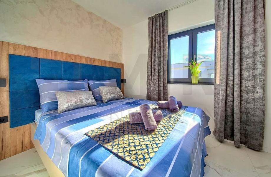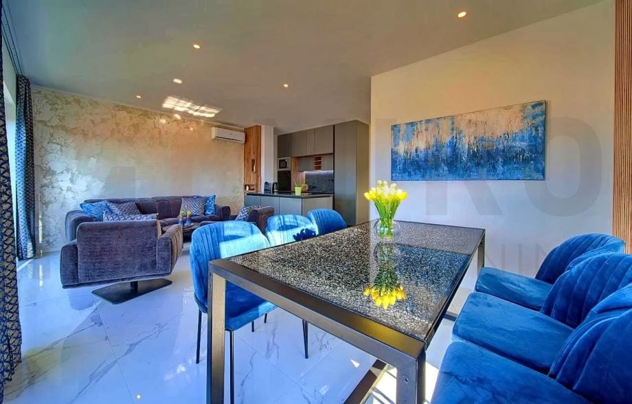 Otok Krk, Malinska u ppnudi je prostrani penthouse, u naravi cijela etaža drugog kata stambene zgrade sa dva odvojena apartmana, ukupne stambene površine 96 m2. Veći apartman sastoji se od ulaznog hodnika, dvije spavaće sobe, kupaone, dnevnog boravka sa kuhinjom i blagovaonom te terase s pogledom na more. Manji apartman obuhvaća ulazni prostor, kupaonu, spavaću sobu, kuhinju s blagovaonom i dnevni boravak s izlazom na balkon s pogledom na more. Pripada im uređena okućnica od 15 m2 i jedno parkirno mjesto na zajedničkom dvorištu kuće. Multisplit klimatizacija prostorija grijanje/hlađenje, podno grijanje te moderne sanitarije i podne obloge samo su neke od obilježja ovih lijepih apartmana. Prodaju se kompletno opremljeni kvalitetnim namještajem po mjeri i električnim uređajima te su odmah spremni za useljenje. Nalazi se mirnoj lokaciji svega 800 m od lijepih plaža i centra sa svim potrebnim sadržajima. Odlična prilika za vlastito stanovanje ili za turistički najam. Apartman je u vlasništvu fizičke osobe i kupac je u obvezi plaćanja poreza na promet nekretnine u visini 3%. Prodavatelj nekretnine jamči urednu vlasničku dokumentaciju. Posjetite nas i pronađite kvadrat vašeg doma!