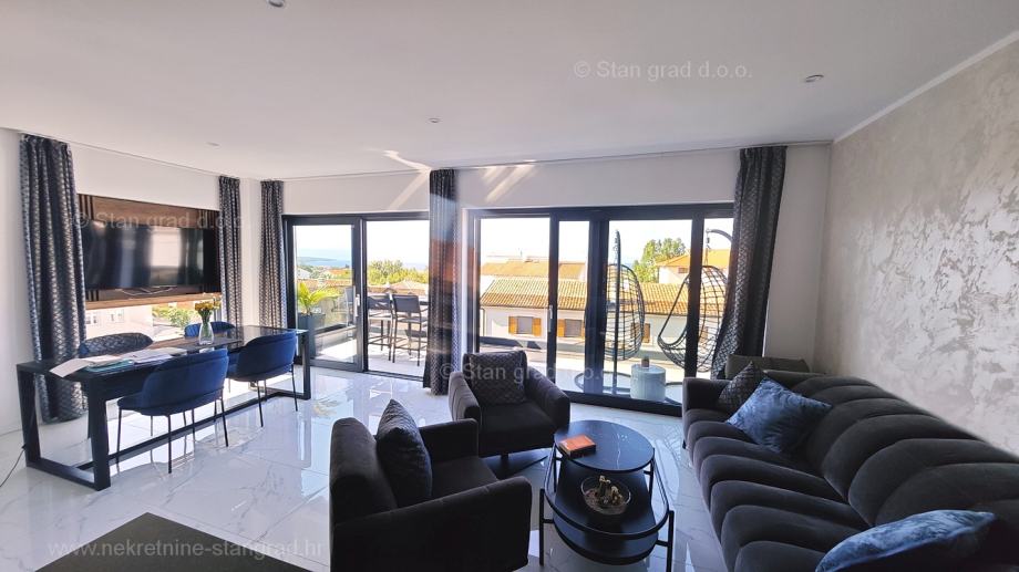 Iz odlične ponude nekretnina u agenciji Stan Grad Immobilien, izdvaja se vrlo lijep apartman u kvalitetnom i poželjnom obalnom jadranskom odredištu otok Krk. Dostupna nekretnina je smještena na vrlo privlačnoj lokaciji u neposrednoj blizini središta mjesta Malinska te pruža lagodan pješački odlazak na plažu. Prema vrsti, ovo je prostrani jednoetažni apartman koji se prostire preko cijele etaže objekta. Unutar građevine dobre kvalitete, apartman se nalazi na 2. etaži. Površina ovog apartmana iznosi ukupno 95 m2. Unutar navedene površine nalaze se 2 odvojena apartmana sa zasebnim ulazom. Veći apartman se sastoji od ulaznog hodnika, dnevnog boravka, kuhinje s blagovaonicom, 2 spavaće sobe, kupaonice i terase s pogledom na more, a manji apartman obuhvaća dnevni boravak, kuhinju s blagovaonicom, spavaću sobu, kupaonicu i izlaz na terasu s pogledom na more. Održavani interijer nekretnine je opremljen setom kvalitetne tehničke opreme i komadima dobrog namještaja. Za napomenuti je svakako i to da opisanom apartmanu pripada komadić urednog dvorišta površine cca 14 m2. Vlasnik apartmana na raspolaganju će imati jedno parkirno mjesto. Osim ranije navedenih karakteristika, apartman ima odličan položaj i usmjerenost koji njegovim žiteljima osiguravaju prekrasan otvoreni pogled na more. Ovaj apartman je u vlasništvu fizičke osobe i na ime njegovog prijenosa kupac je u obvezi plaćanja poreza na promet nekretnine u visini 3%. Vlasnik garantira kompletnu i urednu tehničko-vlasničku dokumentaciju te jednostavan prijenos apartmana na kupca. Kontaktirajte nas osobno ili telefonski, nastojat ćemo odgovoriti na sva vaša pitanja. Osim profesionalnog obilaska i prezentacije nekretnine te njenog pravnog statusa, srdačno osoblje naše agencije će kupcu nekretnine sa zadovoljstvom pomoći u prijenosu vlasničkih prava te prijenosu računa za komunalne usluge na svoje ime.