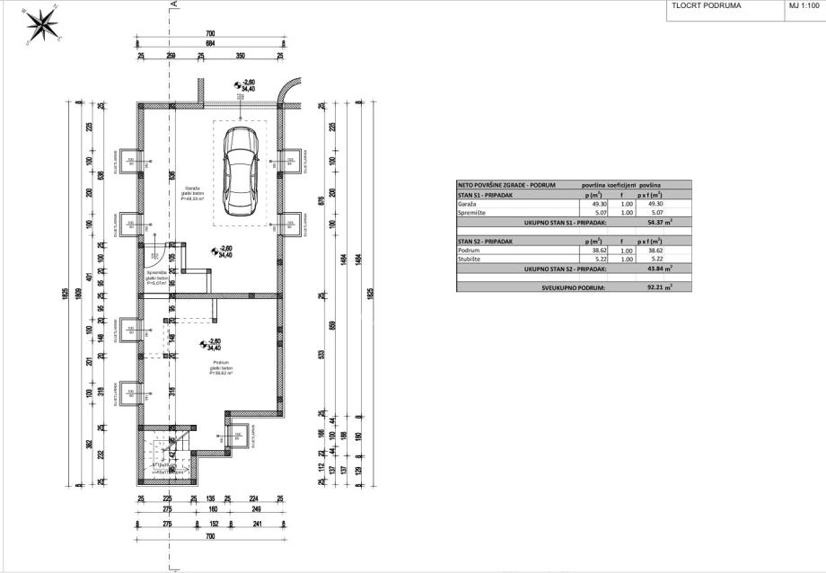 Garaže, spremišta, kuhinje i dnevnog boravka, WC-a, vešeraja/ostave, dvije sobe i dvije kupaonice