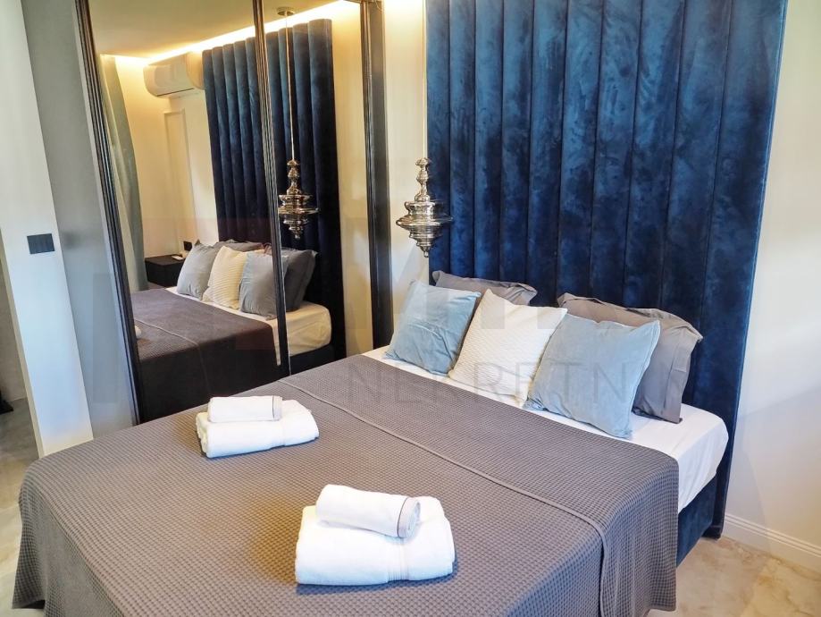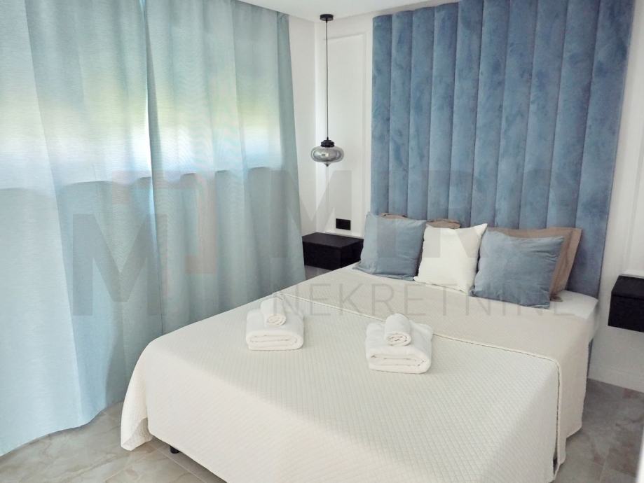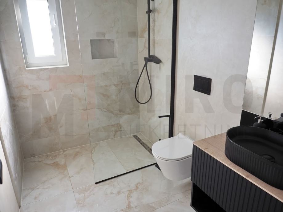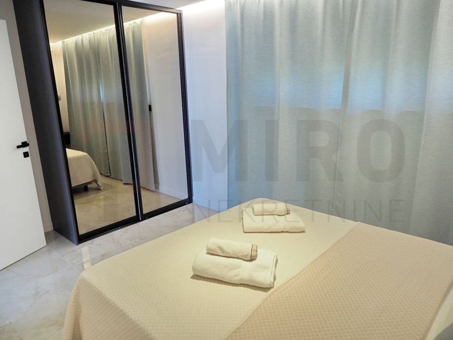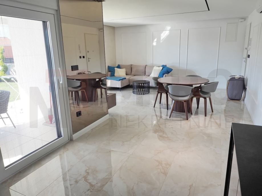 Otok Krk, Malinska u ponudi imamo moderan apartman smješten u prizemlju novogradnje s okućnicom i bazenom. Apartman stambene površine od 70 m2 i sastoji se od ulaznog hodnika, dvije spavaće sobe sa pripadajućim kupaonama, te prostora koji obuhvaća kuhinju, blagovaonu i dnevni boravak sa izlazom na natkrivenu terasu od 19 m2 , lijepo uređena okućnica od 300 m2 na kojoj se nalazi bazen od 28 m2 i sunčalište Pripada mu parkirno mjesto na dvorištu zgrade. Vrhunska gradnja i oprema, PVC stolarija, električne rolete sa komarnicima, podno grijanje, klimatizirani sustav grijanja/hlađenja i novi kvalitetan namještaj rađen po mjeri. Atraktivna lokacija svega 800 m udaljen od mora i plaže. Apartman je u sustavu PDV-a i kupac ne plaća porez na promet nekretnina. Prodavatelj nekretnine jamči urednu vlasničku dokumentaciju. Posjetite nas i pronađite kvadrat vašeg doma!
