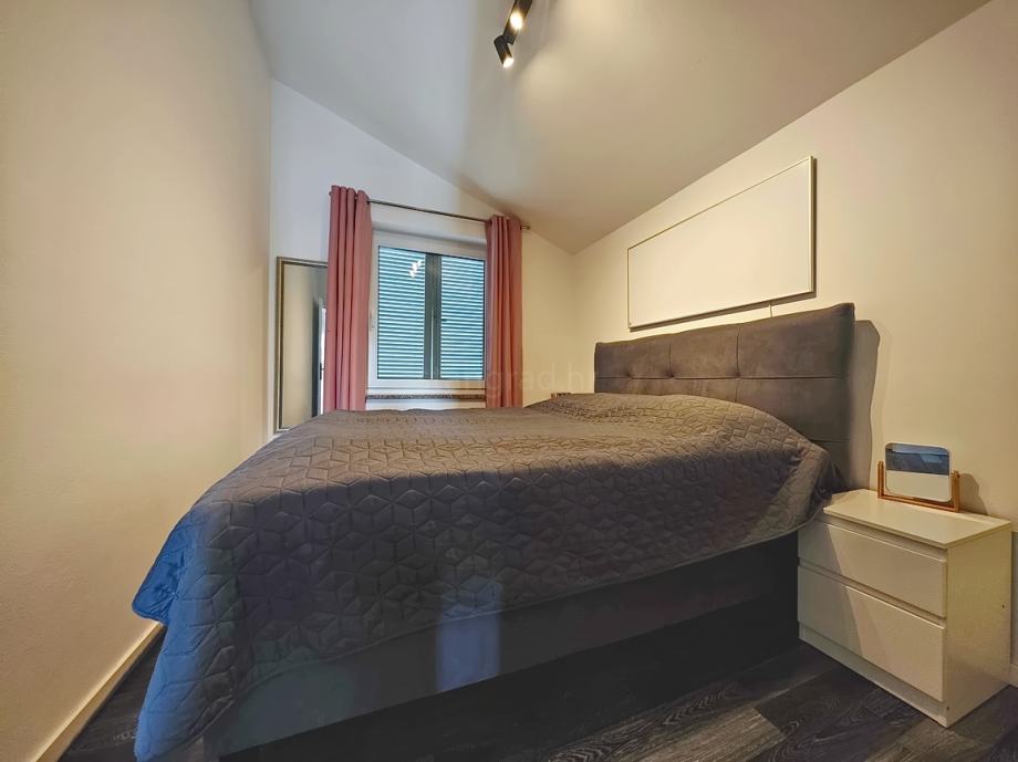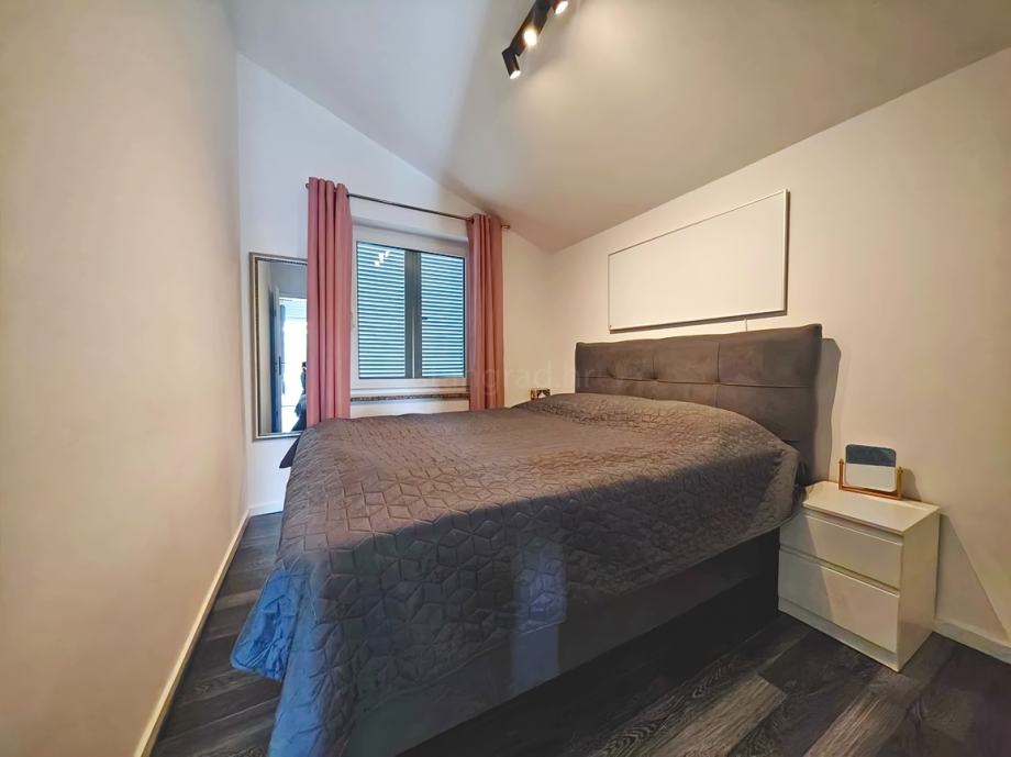 Po tipu građevine, ovo je rijetko raspoloživi manji, jednoetažni apartman vrlo dobrog rasporeda. U objektu dobre kvalitete, apartman je pozicioniran na 1. etaži. Apartman obuhvaća ukupnu površinu od približno 35 m2. Tom površinom obuhvaćeni su dnevni boravak i kuhinja s blagovaonicom, spavaća soba, kupaonica i terasa. Unutarnji prostori nekretnine su osobito dobro održavani te u potpunosti opremljeni potrebnim tehničkim uređajima i vrlo kvalitetnim namještajem.
